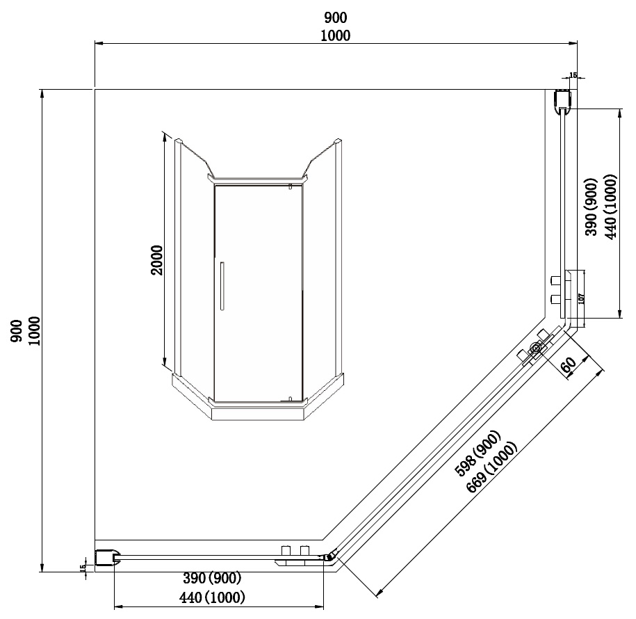 Душевое ограждение AZARIO EDMONTON 900х900х2000 стекло серое 8 мм. профиль серый AZ-NNC3231-2 900