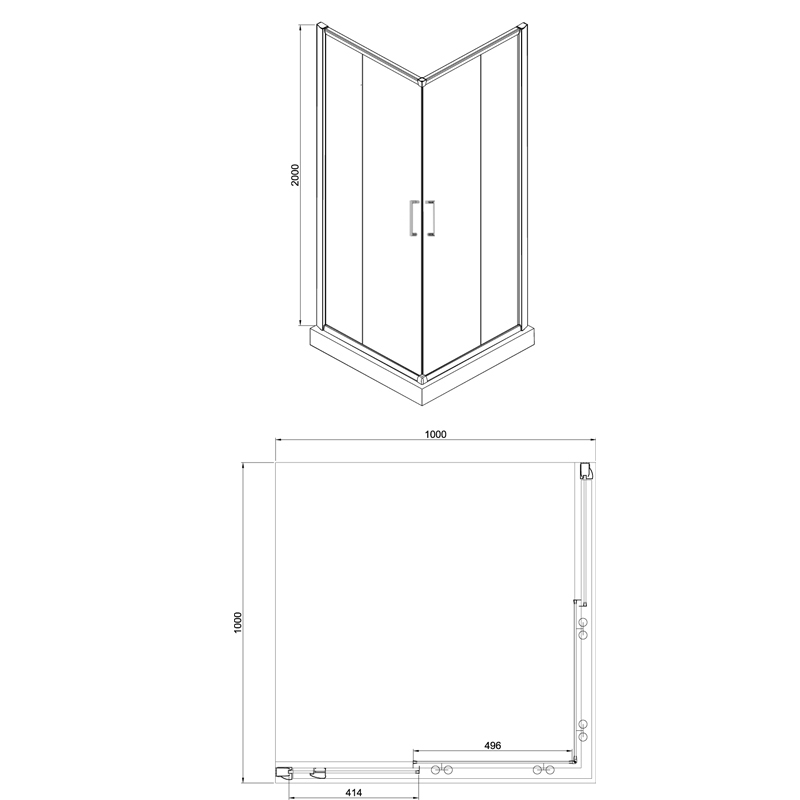 Душевое ограждение Azario GREENWOOD 1000х1000х1850, БЕЗ ПОДДОНА, прозрачное стекло 6 мм, цвет профил AZ-NNE1142 1000