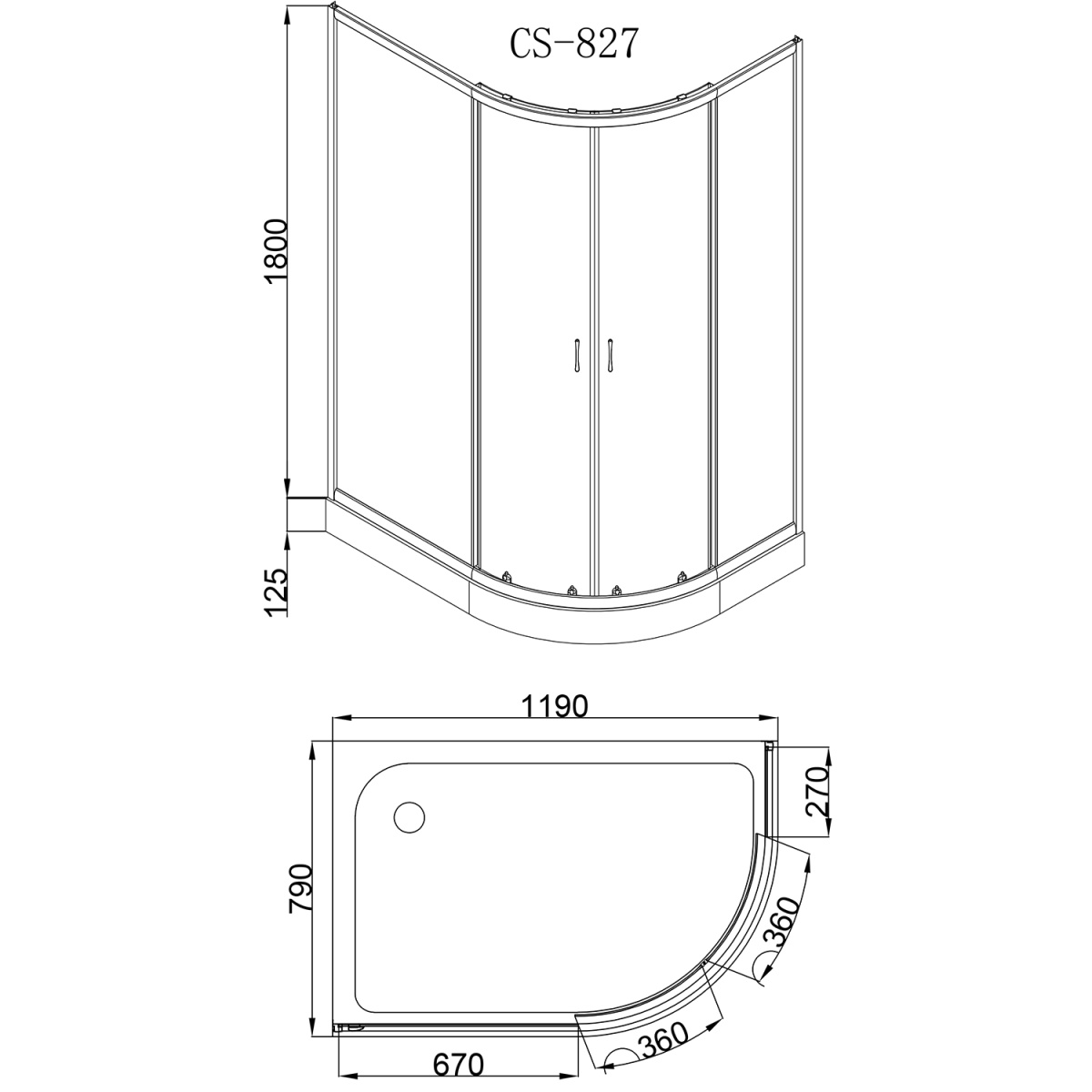 Душевое ограждение Loranto 120х80х195, низкий поддон 13 см, матовое стекло 4 мм CS-827AR CS-827AR (аналог CS-1285) 120*80*195
