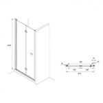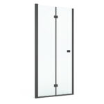 Прозрачное закаленное стекло толщиной 6 мм с гидрофобным покрытием MaxiClean. Алюминиевые профили, металлические ручки, металлические петли с механизмом подъема/опускания – черного цвета. Возможен монтаж без душевого поддона.
