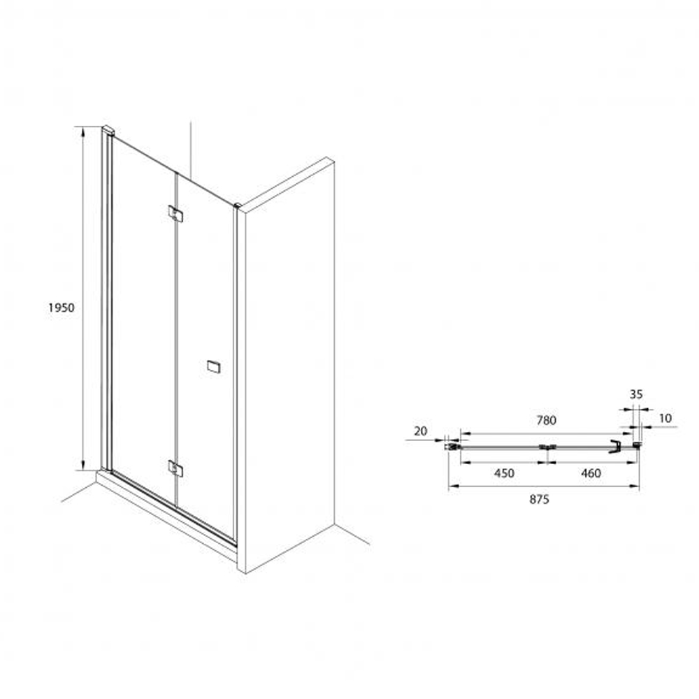 Прозрачное закаленное стекло толщиной 6 мм с гидрофобным покрытием MaxiClean. Алюминиевые профили, металлические ручки, металлические петли с механизмом подъема/опускания – черного цвета. Возможен монтаж без душевого поддона.