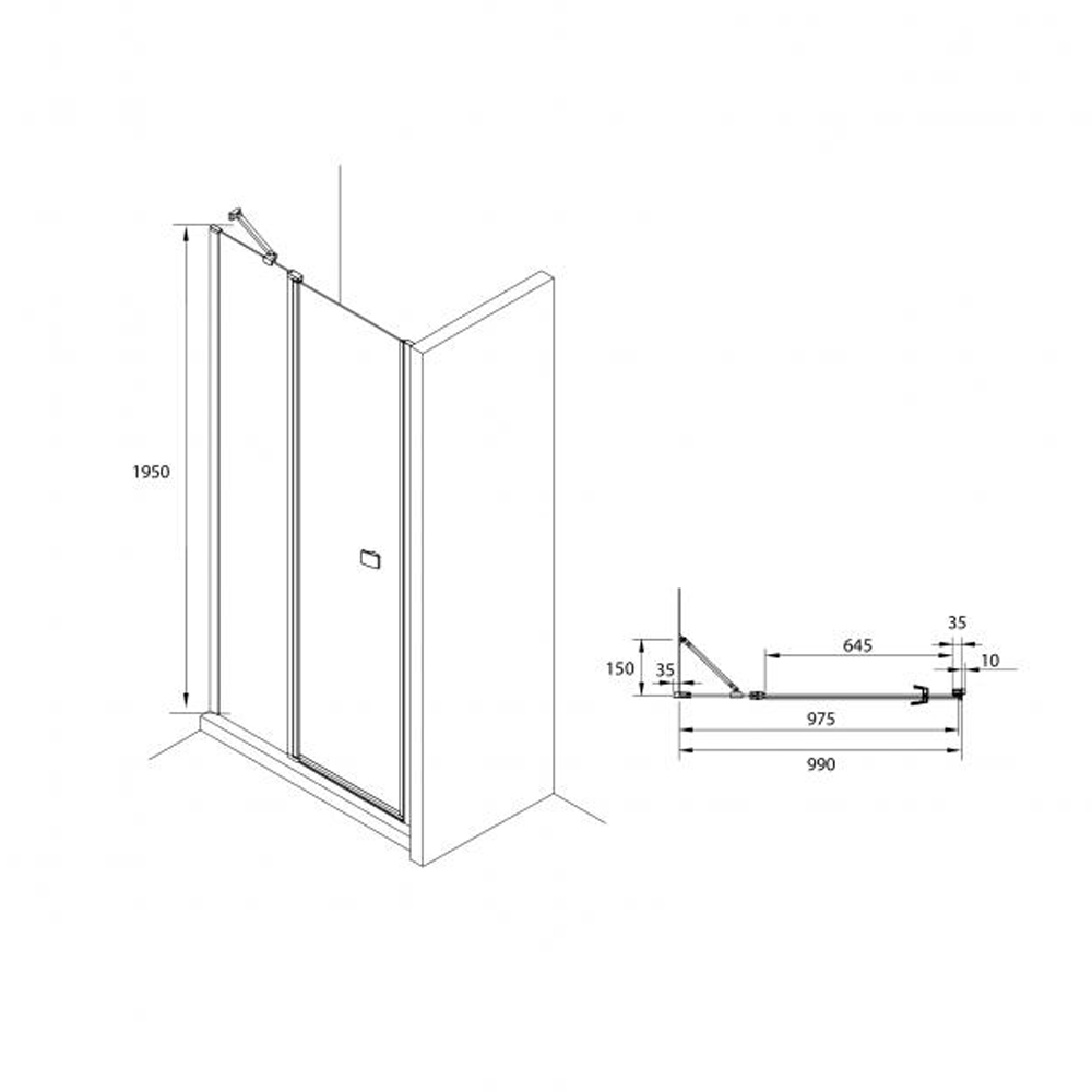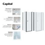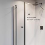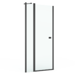 Прозрачное закаленное стекло толщиной 6 мм с гидрофобным покрытием MaxiClean. Алюминиевые профили, металлические ручки, металлические петли с механизмом подъема/опускания – черного цвета. Возможен монтаж без душевого поддона.