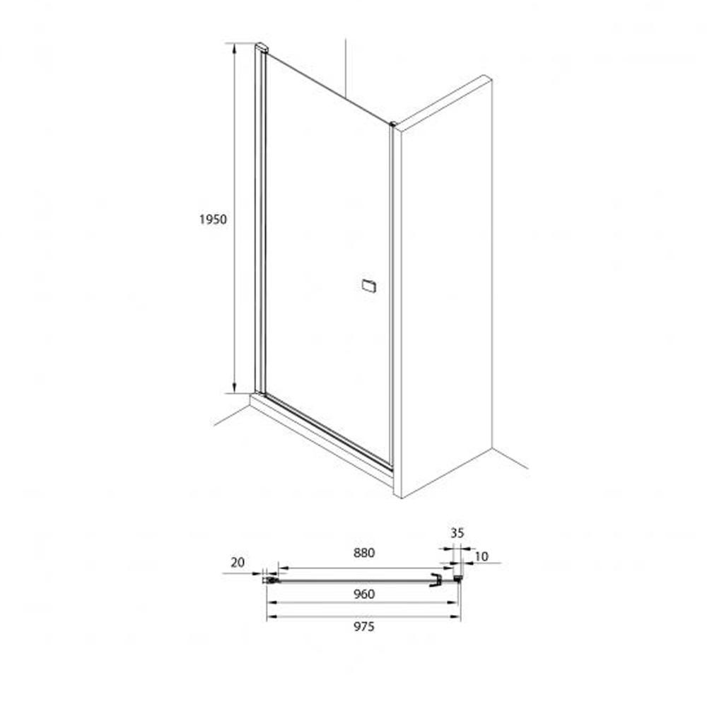 Прозрачное закаленное стекло толщиной 6 мм с гидрофобным покрытием MaxiClean. Алюминиевые профили, металлические ручки, металлические петли с механизмом подъема/опускания – черного цвета. Возможен монтаж без душевого поддона.