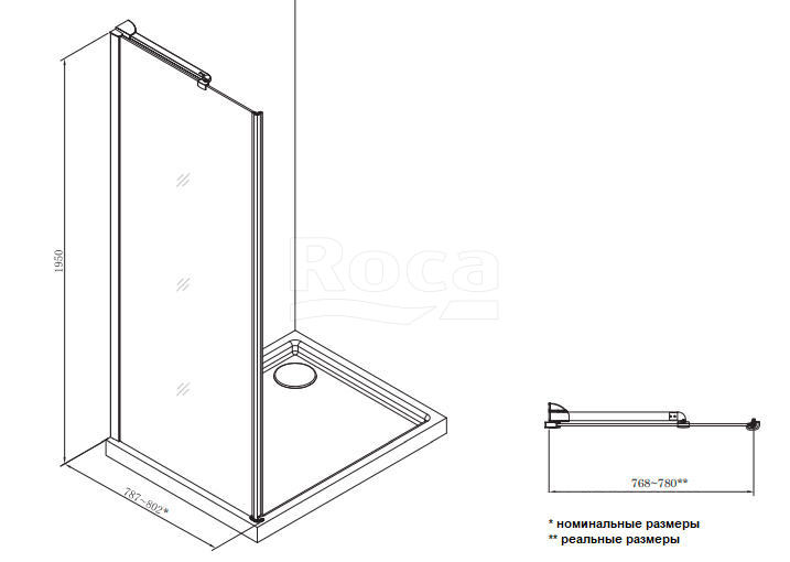 Душевое ограждение Roca Metropolis боковая часть 800х1950 прозрачное стекло, профиль хром MP3508012 7.MP35.0.801.2M