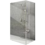 Стекло прикреплено к стене с помощью установочного профиля. Отдельные стекла соединяются с помощью соединительного профиля. Прочность изделия обеспечивает тонкий держатель, который поставляется под заказ. Состоит из двух хромированных заглушек (стена + стекло) и соединен алюминиевым профилем с поверхностной обработкой Alubright или черный.