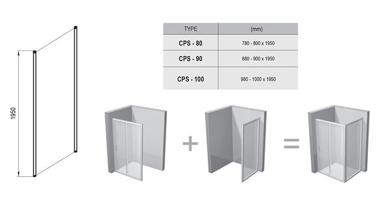 Идеальный партнер для душевых дверей CRV1 и CRV2. Их комбинация позволяет создать прямоугольный или квадратный душевой уголок в соответствии с Вашими потребностями.