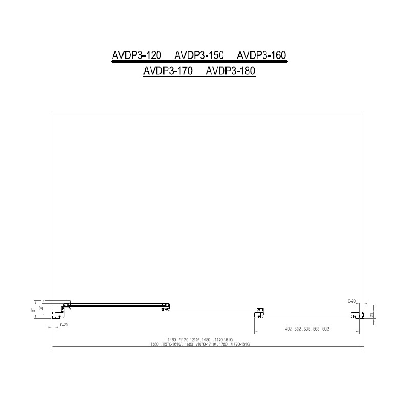 Шторка для ванны Ravak AVDP3-160, профиль белый, цвет стекла “Потоки дождя” 40VS010241