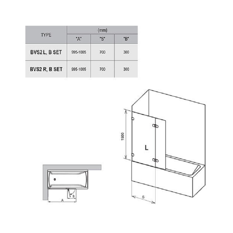 Шторка для ванны Ravak BVS2-100 L, профиль хром, стекло прозрачное 7ULA0A00Z1