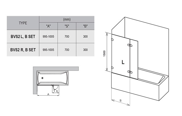 Штора состоит из одной неподвижной части и одной подвижной части, поворачивающейся наружу. Высококачественные металлические хромированные петли и закаленное стекло (толщина неподвижной части – 8 мм, подвижной – 6 мм) гарантируют максимальное качество и легкий дизайн. Штора подходит для прямоугольных ванн (Classic, Sonata, Campanula II, Vanda II и Lilia) или какой-либо классической прямоугольной ванны с ровным передним бортом. Стандартная высота шторы 1500 мм. Штора для ванны поставляется в составе: стеклянная часть – в одной упаковке, В другой упаковке (B SET) находятся металлические части. Обе части изделия (стекла + B SET) заказываются отдельно.
