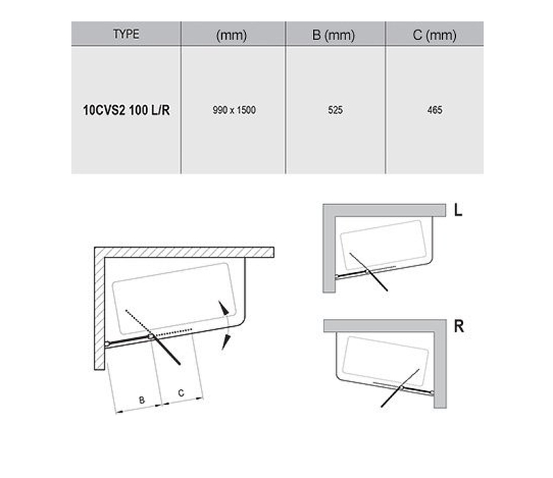 Шторка на ванну Ravak 10° CVS2-100 100х150 L 7QLA0U03Z1.