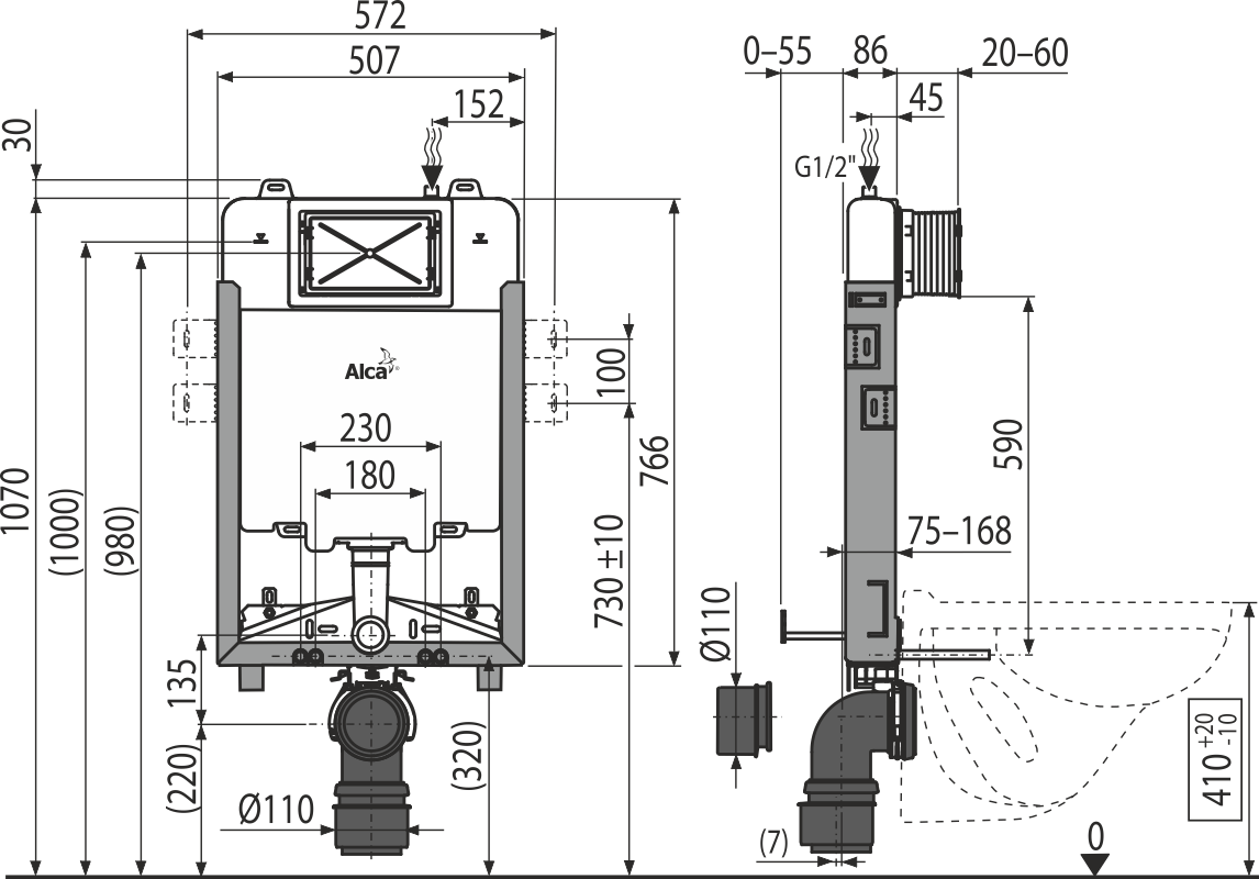 Для установки подвесного унитаза с интервалом крепления 180 мм или 230 мм
