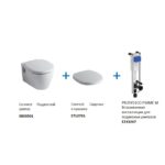 ВИРТУАЛЬНЫЙ ПРОМО СЕТ 3 в 1 CONNECT Промо-комплект, состоящий из: CONNECT подвесной унитаз E803501; CONNECT сидение и крышка с функцией плавного закрытия E712701; E233267 PROSYS ECO FRAME M Встраиваемая инсталляция для монтажа подвесных унитазов