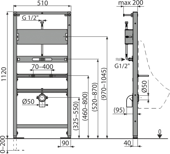 Конструкция рамы позволяет производить монтаж к профилю для гипсокартона, предназначенного для этих целей, или к несущей стене