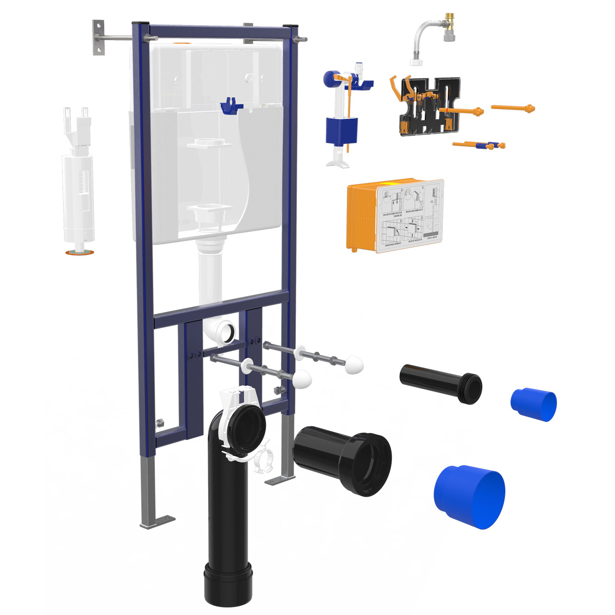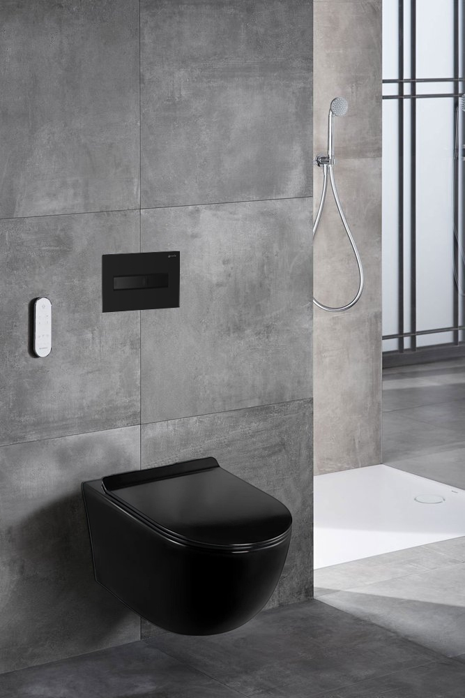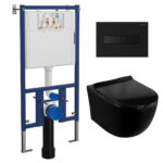 Сет LORANTO Инсталляция с кнопкой Line черная матовая + унитаз CANTO чёрный матовый с сиденьем микро 4501+7323+CS-203HM-MB