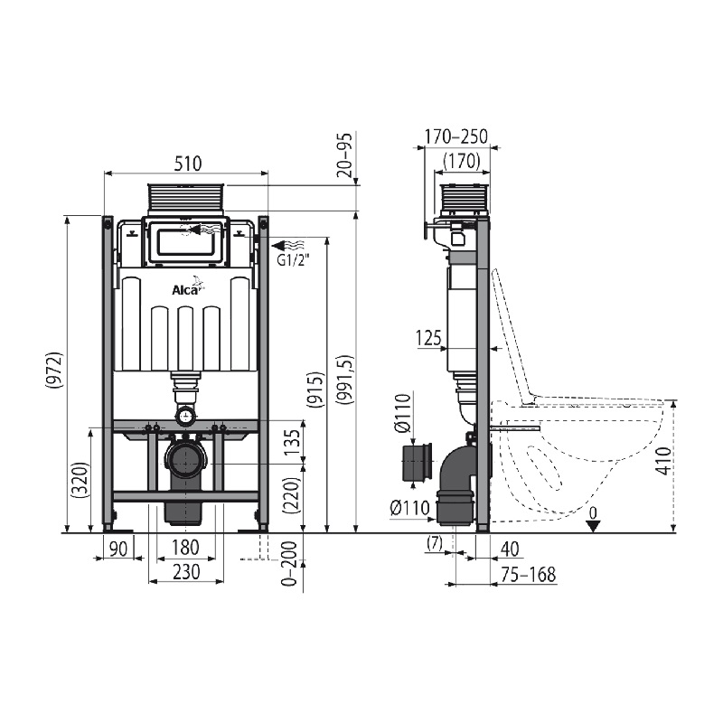 Система инсталяции Alcadrain 1000, управление сверху или спереди AM118/1000