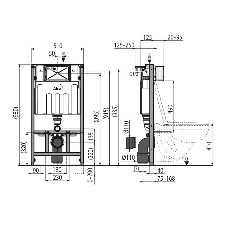 Скрытая система инсталляции Alcadrain, для сухой установки для гипсокартона AM101/1000