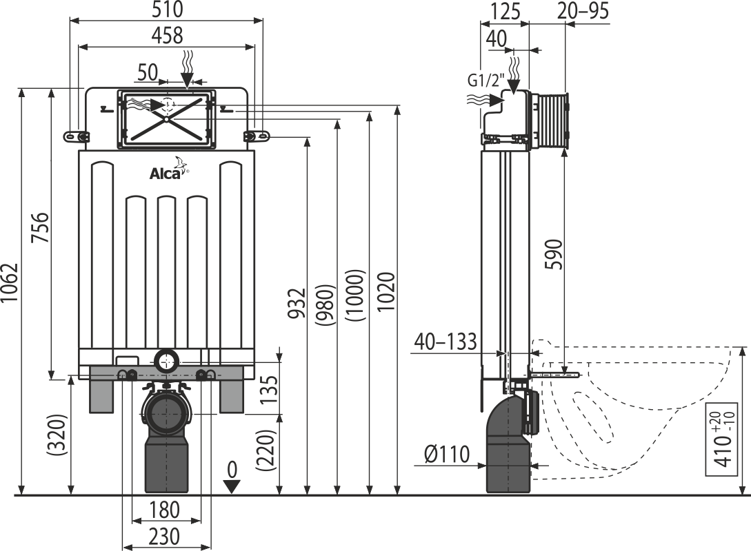 Скрытая система инсталляции для ограждающих конструкций внутри и вокруг несущей стены – мокрый монтаж, для установки подвесного унитаза с интервалом крепления 18 см или 23 см.