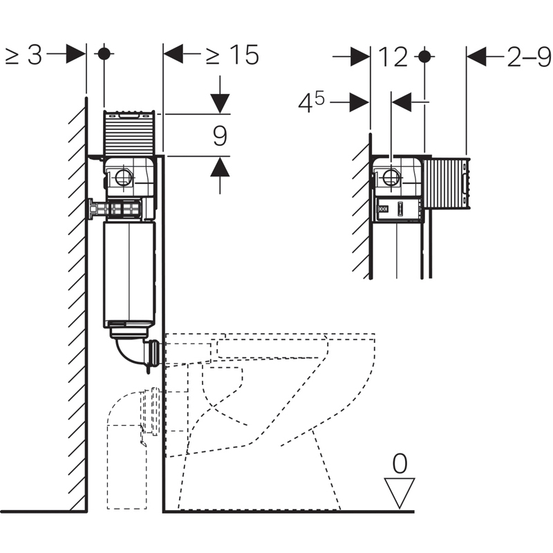 Смывной бачок скрытого монтажа Geberit Omega 12 см, 6/3 литра, монтажная высота 82 см 109.043.00.1