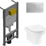Комплект унитаза с инсталляцией Jacob Delafon Elite E21742RU-00 с сиденьем Микролифт и клавишей смыва Хром.