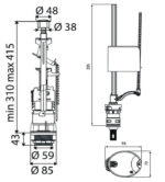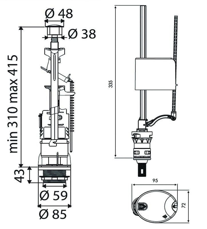 Комплект DECO состоящий из сливного однорежимного клапана c кнопкой глянцевый хром и крепежом и наполнительного клапана, с нижней подводкой, 1/2, пластик, используется для бачков унитазов высотой от 300 до 420 мм и диаметром отверстия в крышке бачка 38-45 мм.