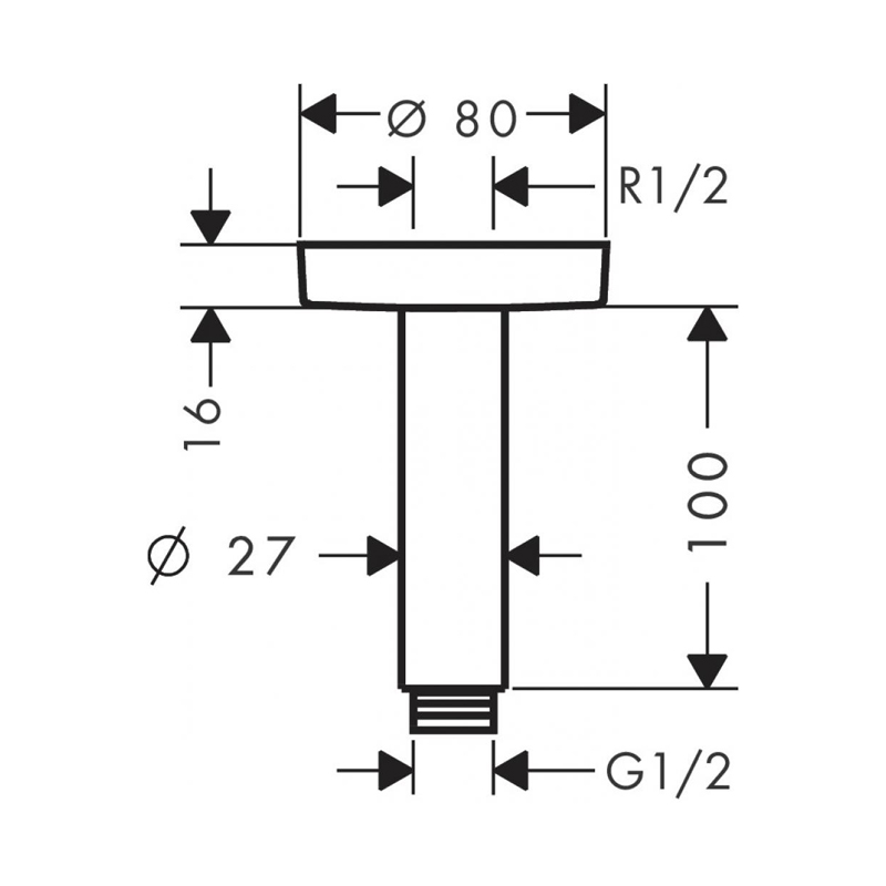 Потолочное подсоединение Hansgrohe S, 100 мм, матовый белый 27393700