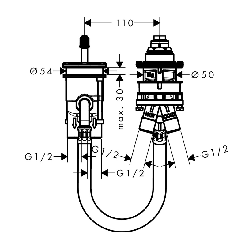Скрытая часть смесителя для ванны Hansgrohe на 2 отверстия 13159180