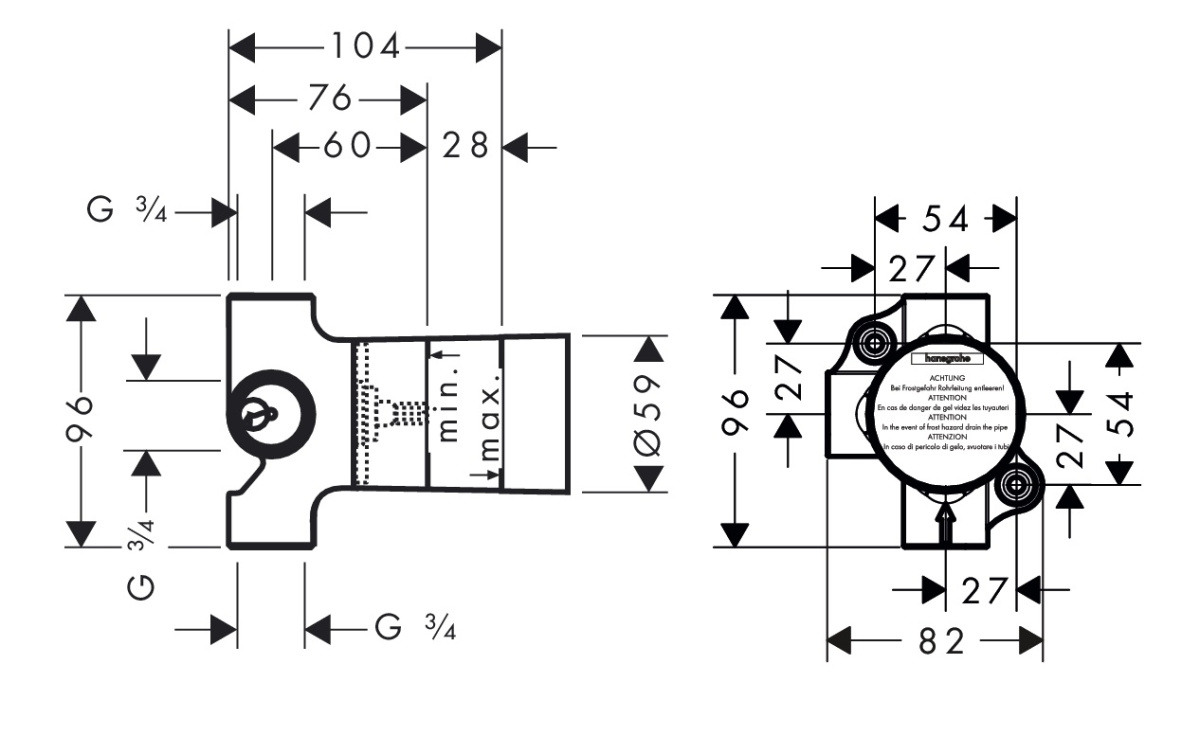 Скрытая часть запорного/переключающего вентиля Hansgrohe Trio Universal, СМ, 3/4 15981180