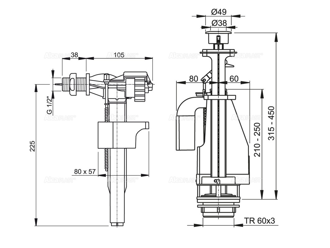 Содержимое упаковки: A16 1/2″, A08A, заглушки, шурупы, прокладки
