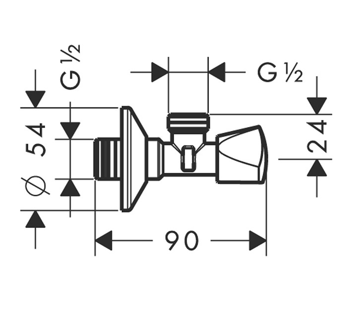 Угловой вентиль Hansgrohe E, G 1/2, хром 13903000