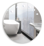 Гримерное зеркало идеальной круглой формы  из стекла высшего качества M0 (влагостойкое, минимальные оптические искажения). 3 режима включения  подсветки с холодным, нейтральным и теплым свечением, идеально освещают лицо при нанесении макияжа.  LED-подсветка выдерживает до 50 тыс. часов работы в непрерывном режиме. Изделие оснащено сенсорным выключателем с функцией плавного диммирования, с запоминанием последнего значения. Короткие касания светящейся области включают/выключают подсветку, длительное касание меняет яркость свечения. Прочная обрешетка упаковки защитит зеркало от повреждений. Встроенные часы и датчик температур. Экологически чистый продукт выполненный по стандартам ЕС.