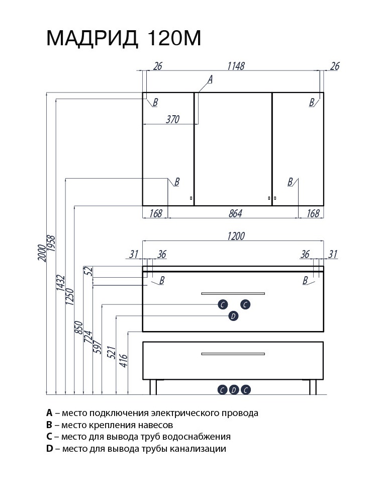 Комод AQUATON Мадрид 120 с ящиком, белый 1A168803MA010