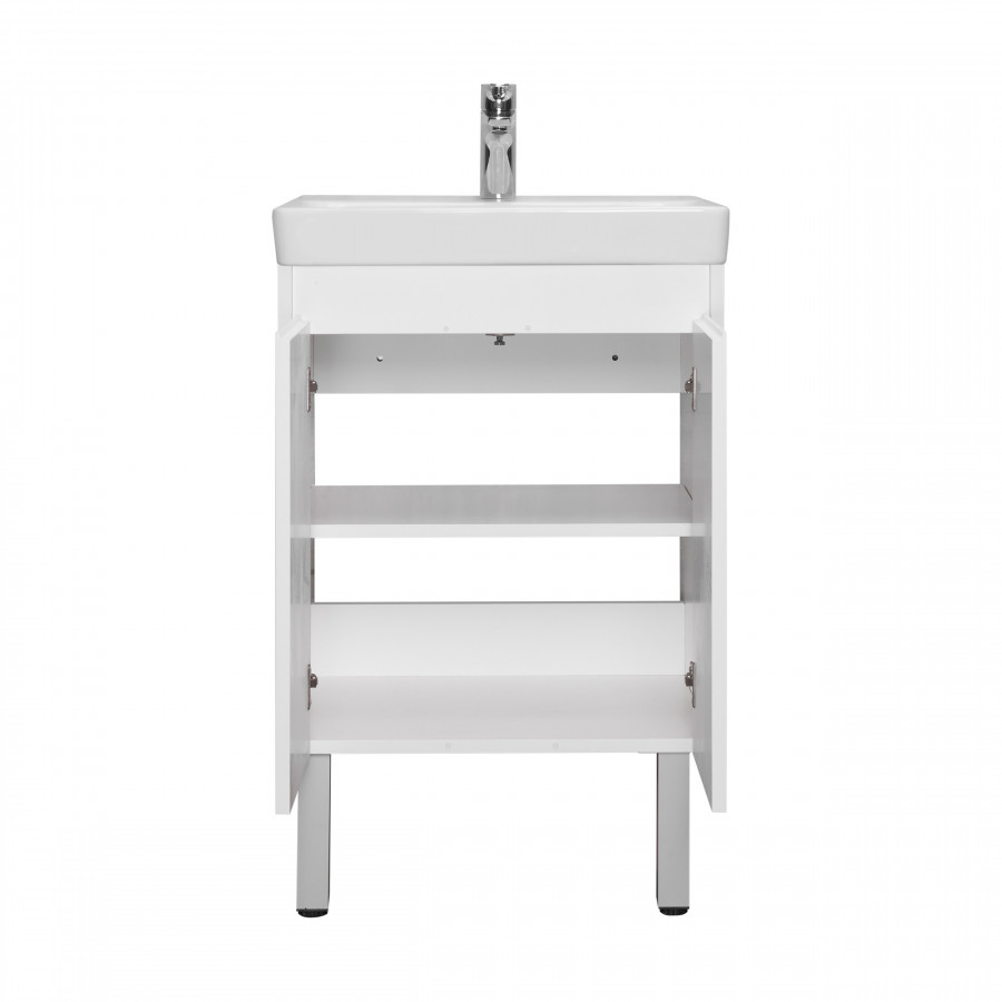 Комплект AQUATON Сканди Doors Тумба под раковину 55 с раковиной Santek Адриана, белый глянец/белый м 1A2788K0SD010