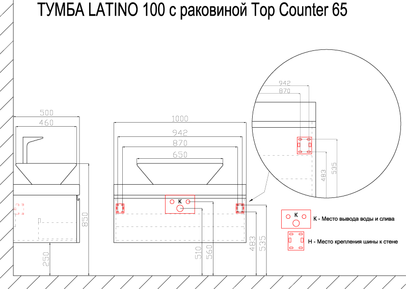 Комплект Azario Тумба LATINA 100 с раковиной Top Counter 65 CS00060591