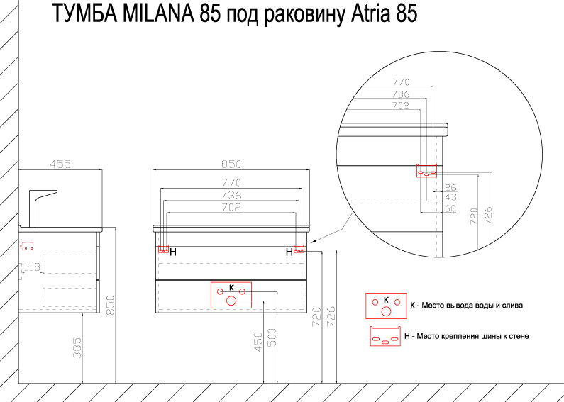 Комплектуется турецким умывальником Sanovit Atria 85.