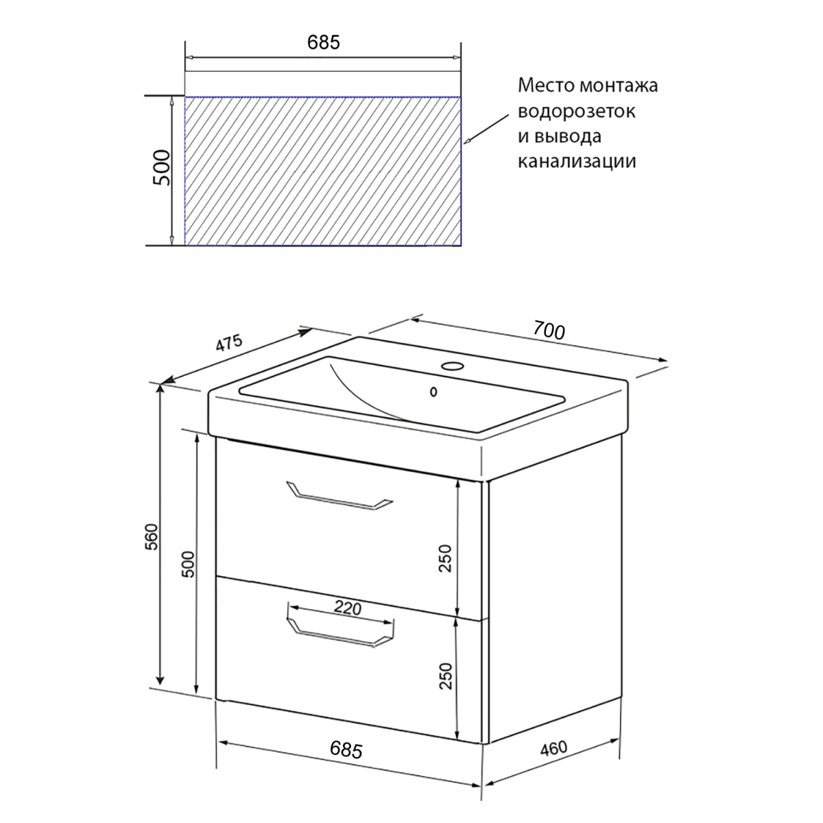 Комплект Azario Тумба Ника 70 700х475х560 подвесная, с раковиной Tempo 70 CS00092801