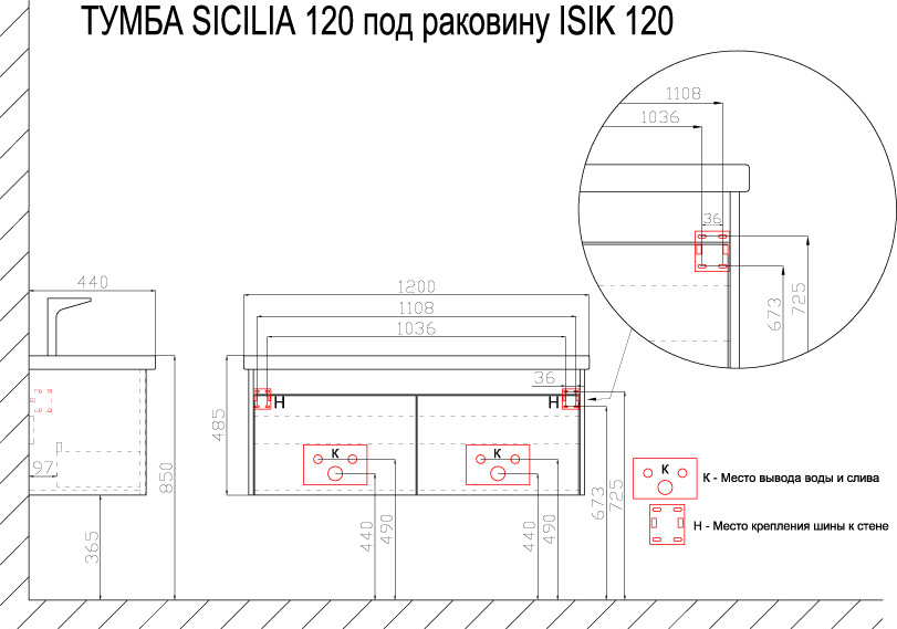 Комплект Azario Тумба SICILIA 120 с раковиной ISIK 120 CS00061147