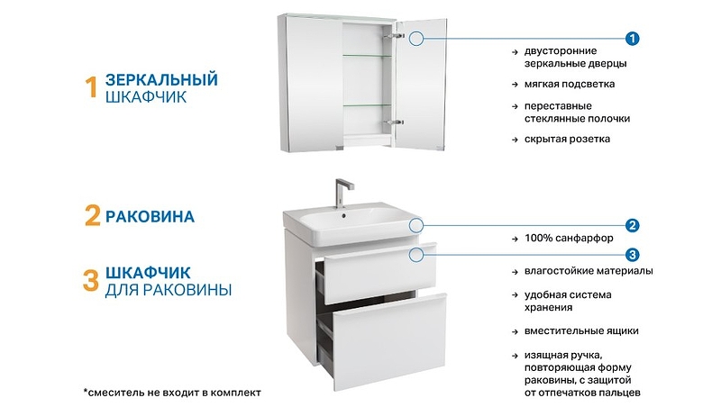 Комплект мебели для ванной Geberit Smyle Square 60 подвесной Белый глянец 529.352.00.6