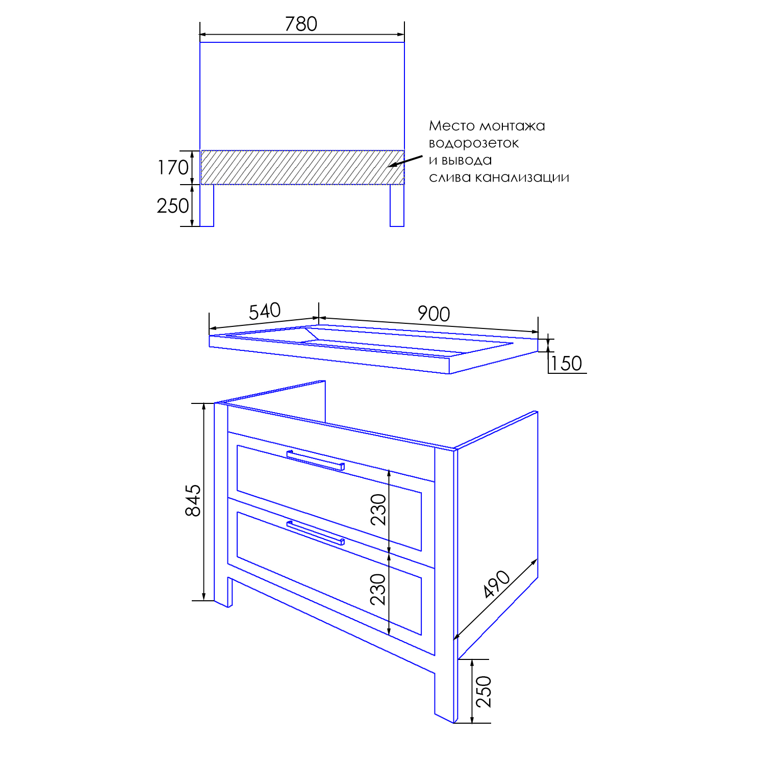 Комплект Тумба Azario CAROLINA 90/2 900х870х540 напольная с раковиной Victorian 90 патина белая (CS0 CS00089994