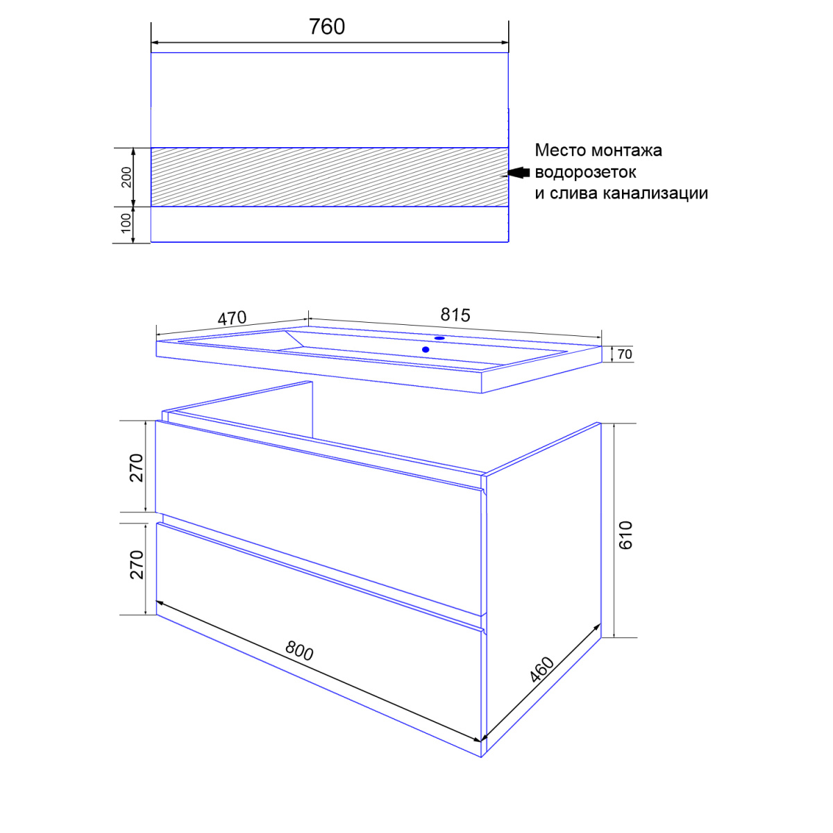 Комплект Тумба Azario Мила 80 815х470х680 подвесная, с раковиной Tempo 80, белый матовый CS00091365