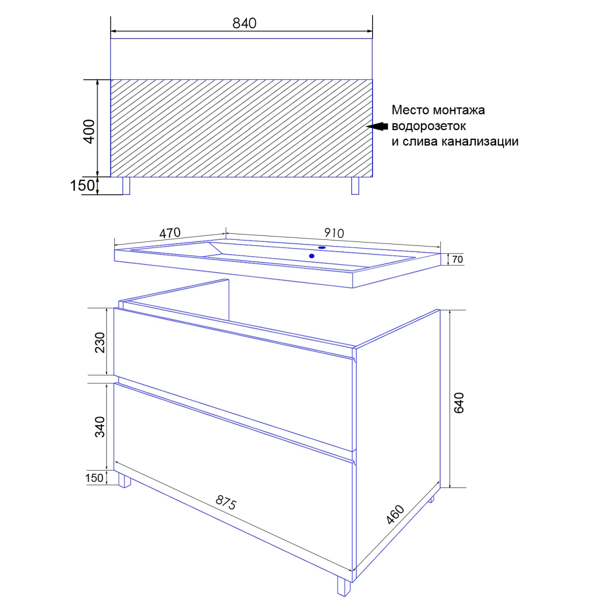 Комплект Тумба Azario Мила 90 Н 910х470х860 напольная, с раковиной Monte 900, белый CS00089953