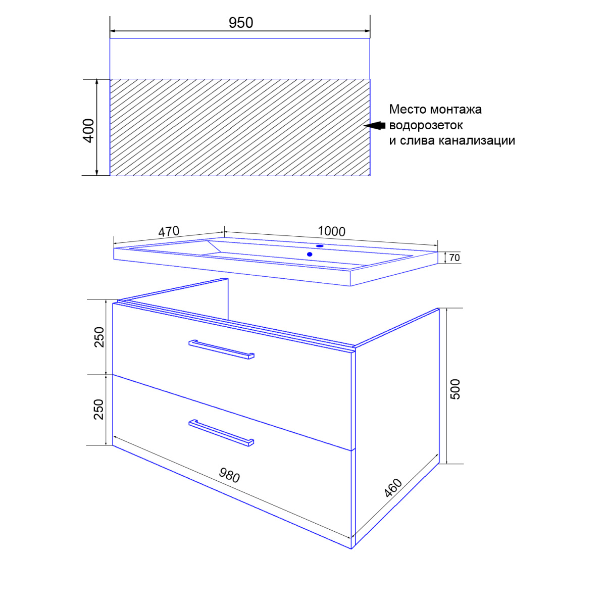 Комплект Тумба Azario Ника 100 1000х470х570 подвесная, с раковиной Monte 100, белый CS00089923