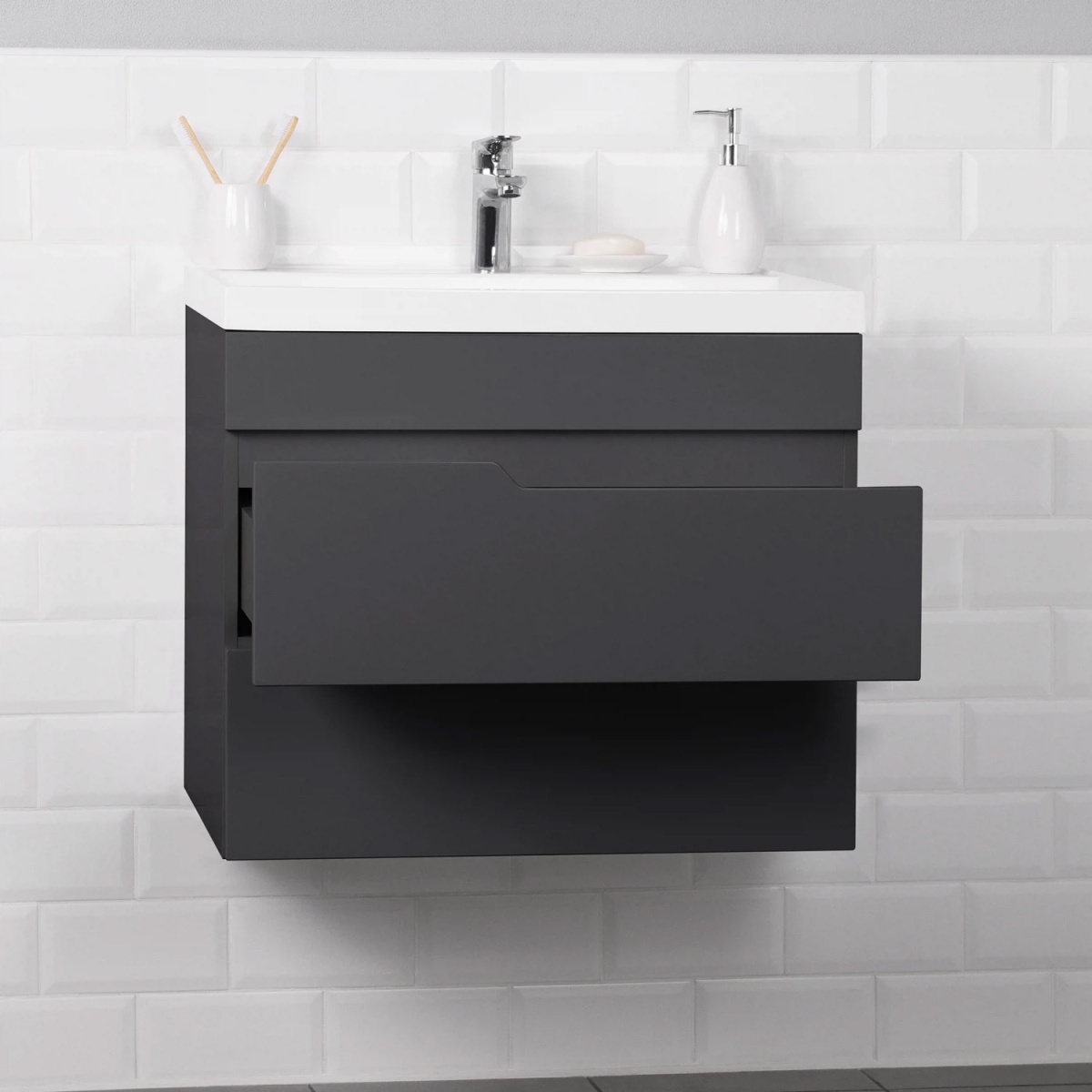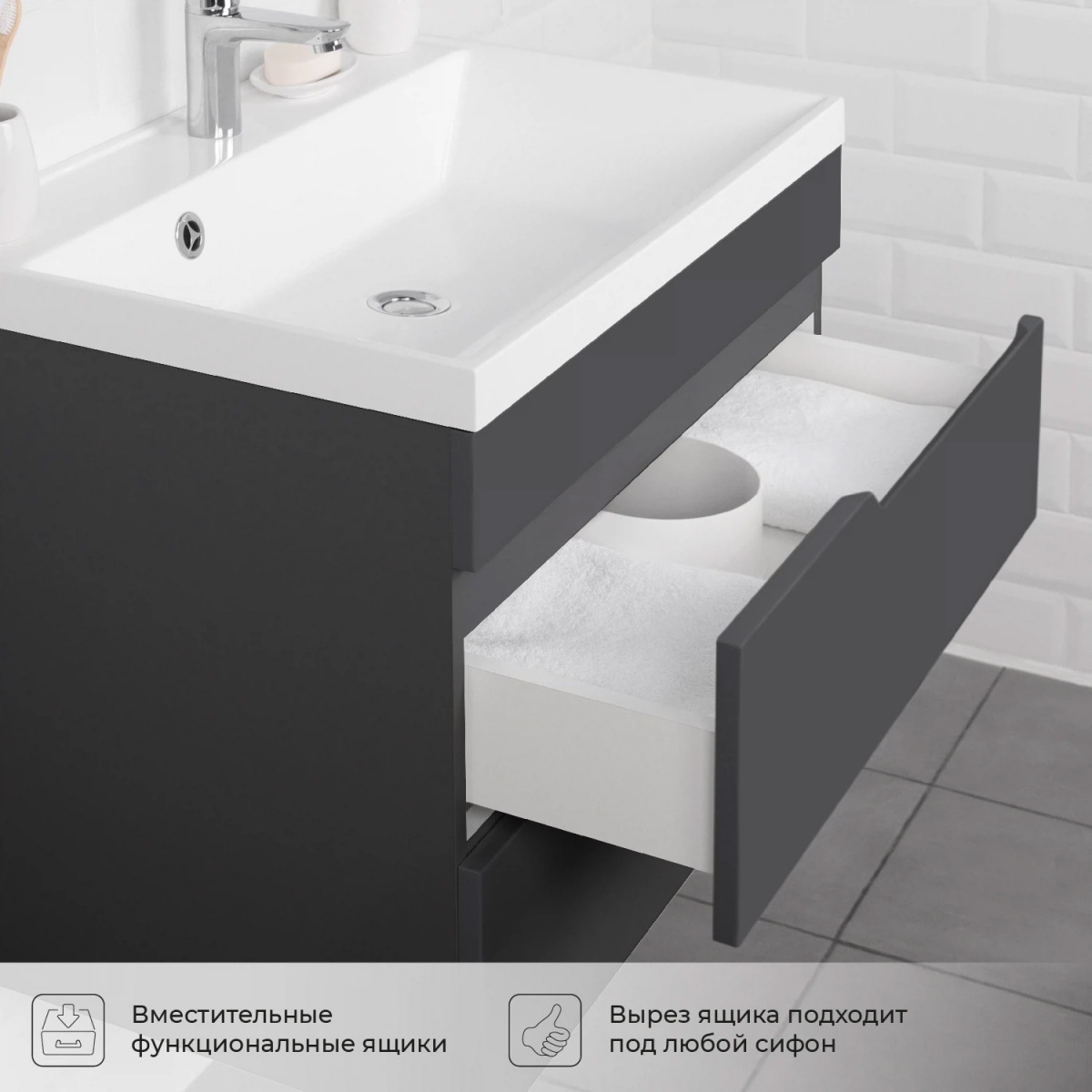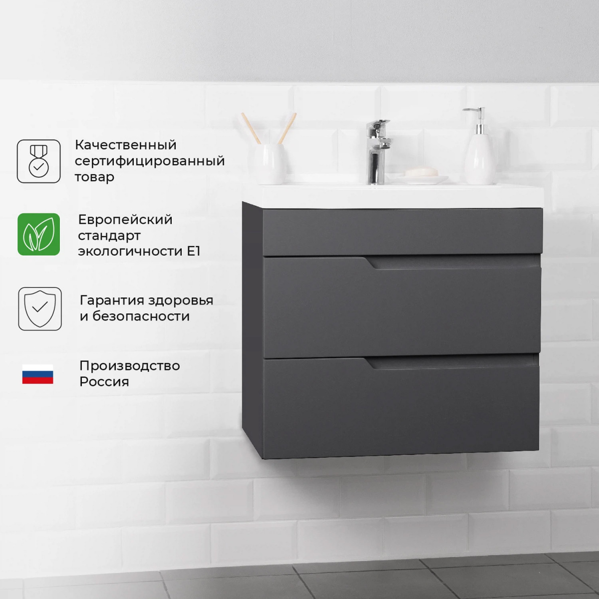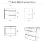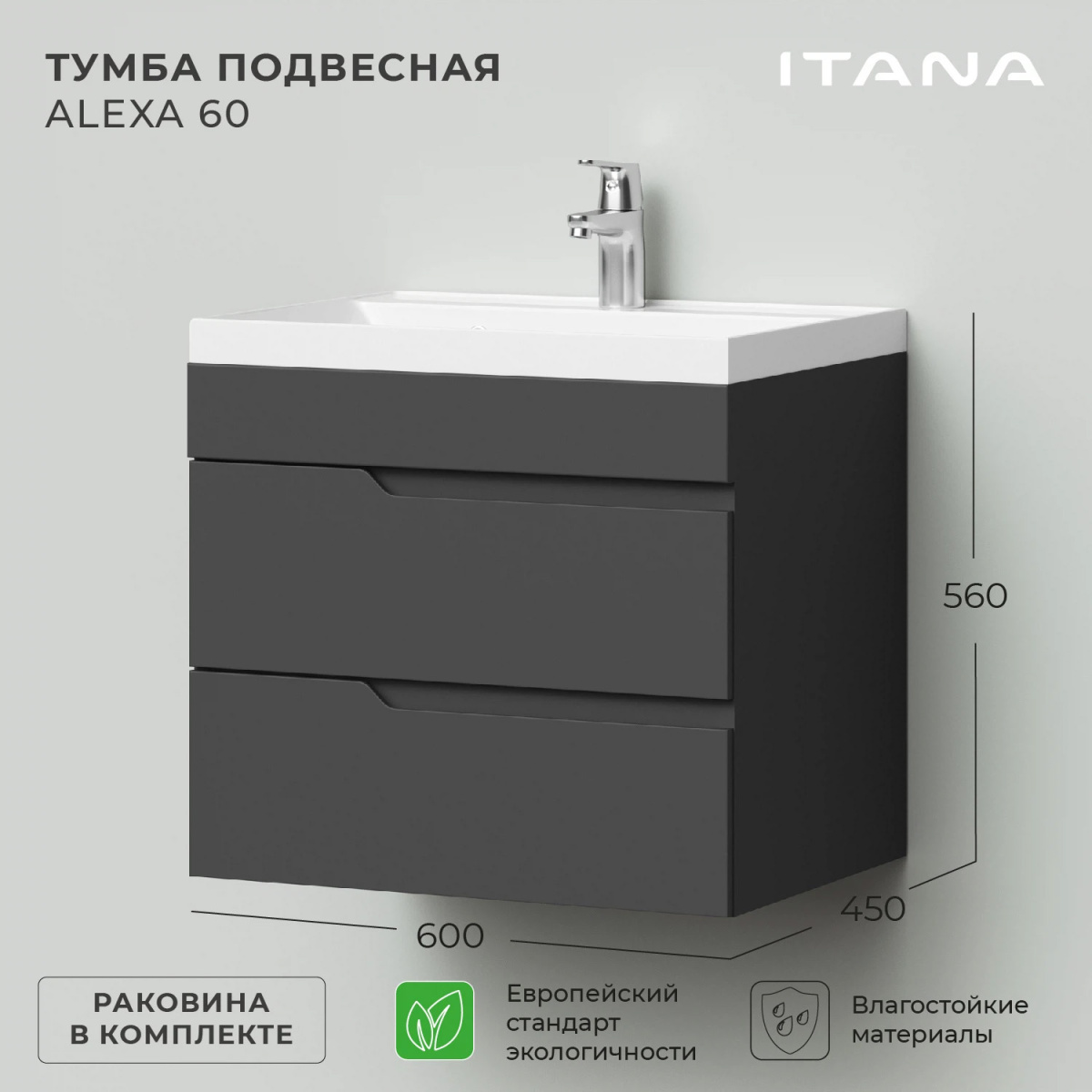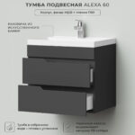 Комплект тумба Итана Alexa 60 600х450х560 подвесная, с раковиной Clarissa 60, графит CS00093214