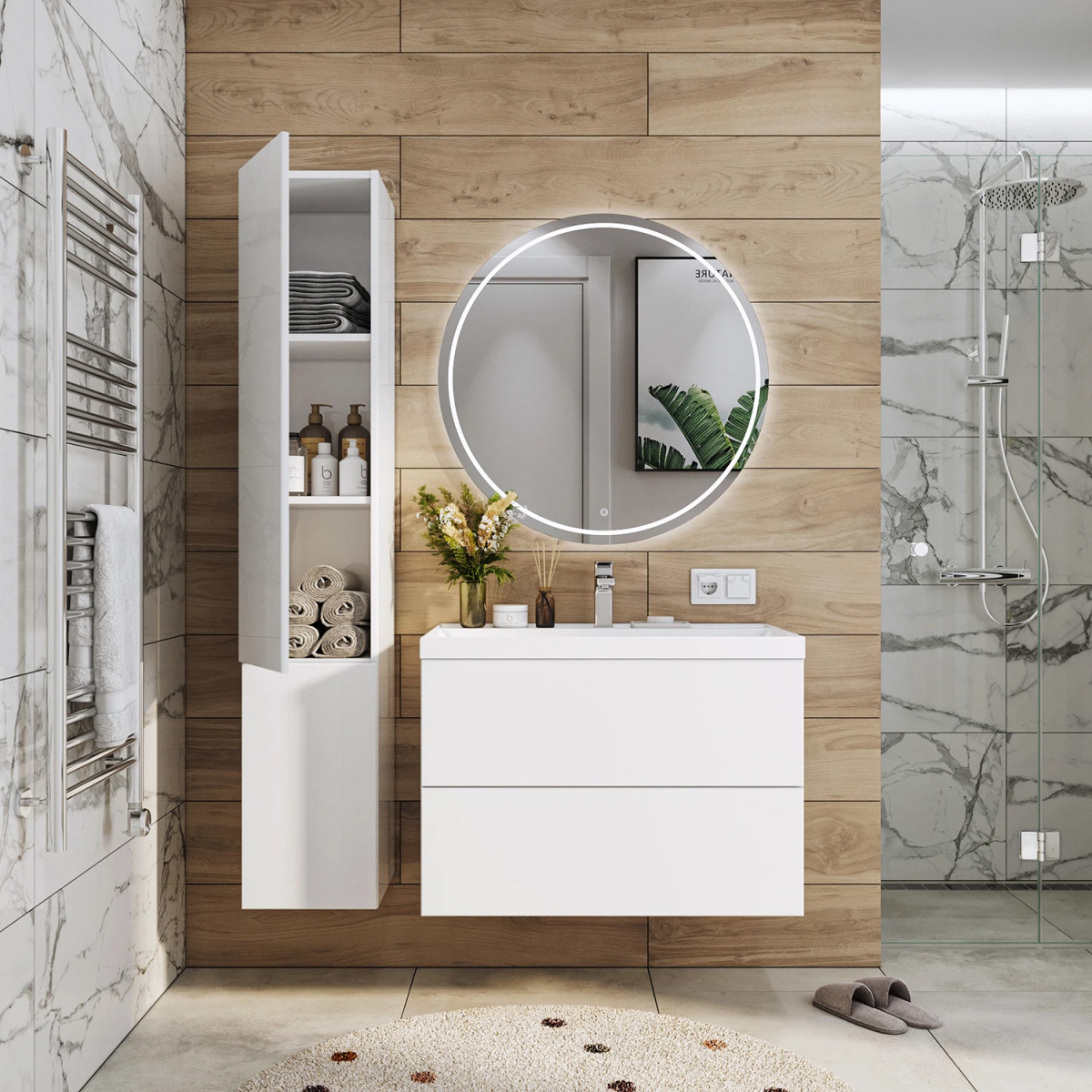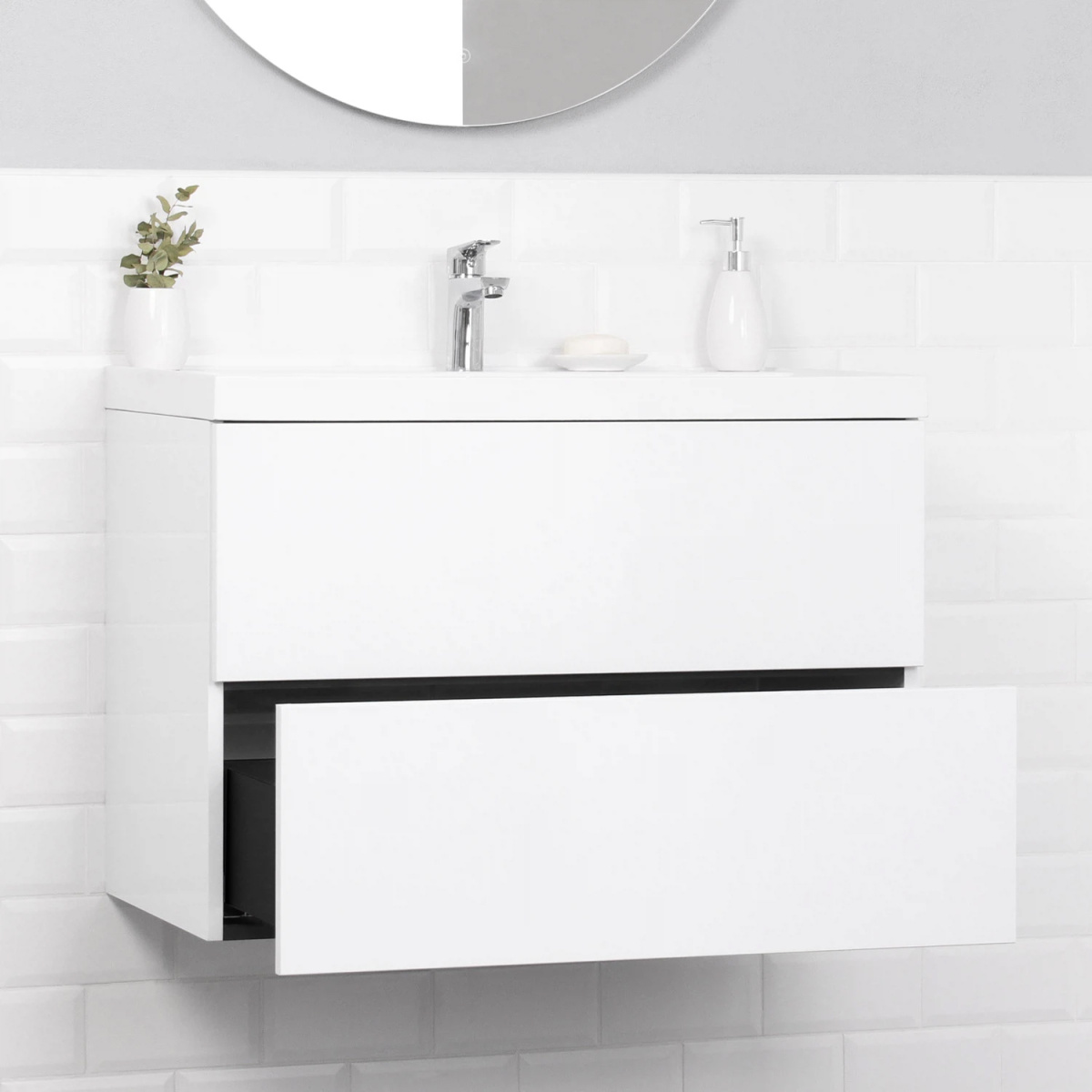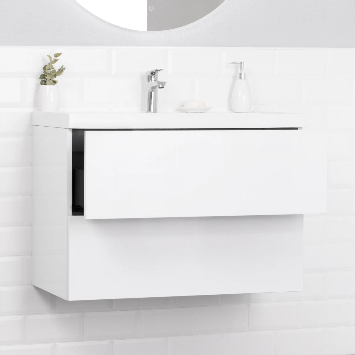 Белоснежная глянцевая мебель из коллекции Icon добавит ощущения чистоты и безупречности в современный интерьер ванной комнаты. Изделия выполнены из влагозащищенного МДФ, корпус и фасады покрыты высокоглянцевой ПВХ-пленкой. Система push-to-open позволяет открывать выдвижные ящики простым нажатием на фасад. Качественные направляющие скрытого монтажа обеспечат плавное открывание и закрывание ящичка. То есть, при небольшом надавливании, ящик — немного выдвинется наружу. Главное преимущество системы: отсутствие ручек на фасадах. Подвесной способ установки обеспечивает легкую уборку в ванной комнате. Идеальные прямые линии, лаконичность, которая восхищает. Такая мебель удовлетворит потребности покупателей в функциональности, но не будет забирать все внимание на себя.