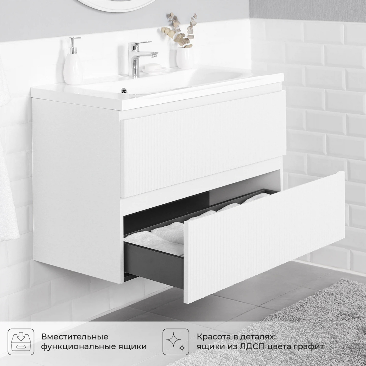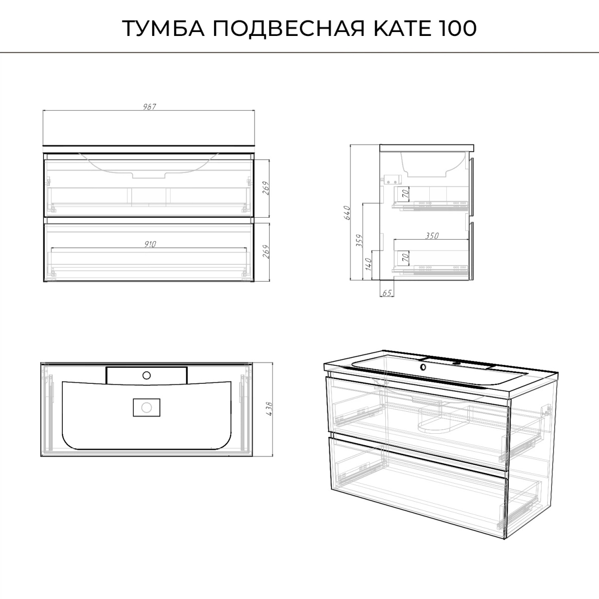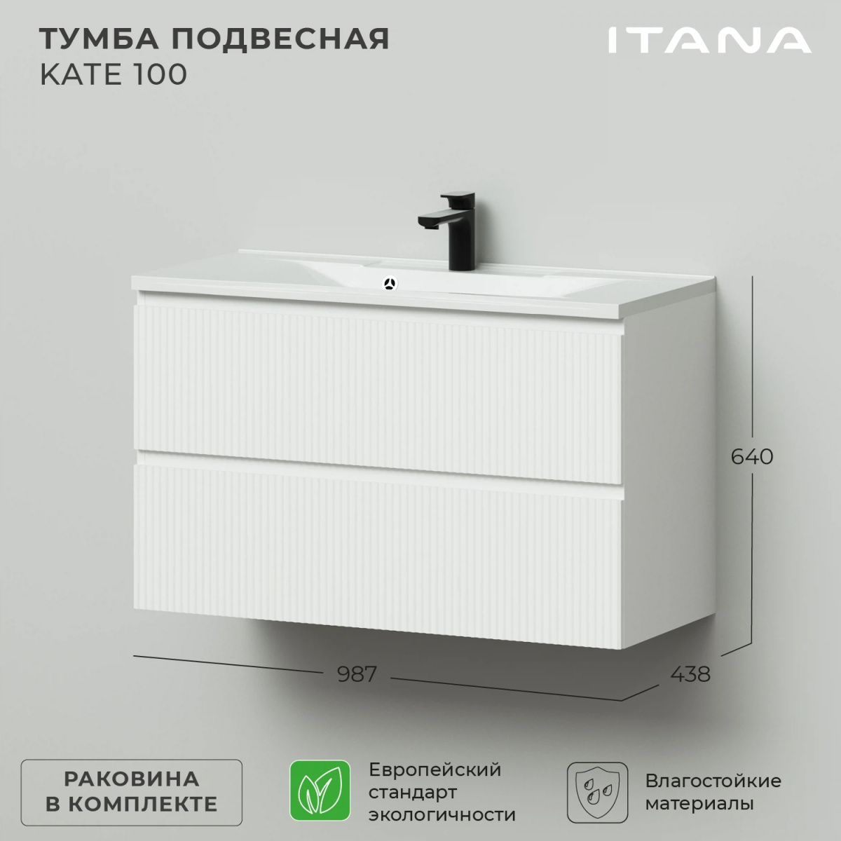 Комплект тумба Итана Kate 100 987х438х640 подвесная, с раковиной Milena 100 Бланж CS00091690