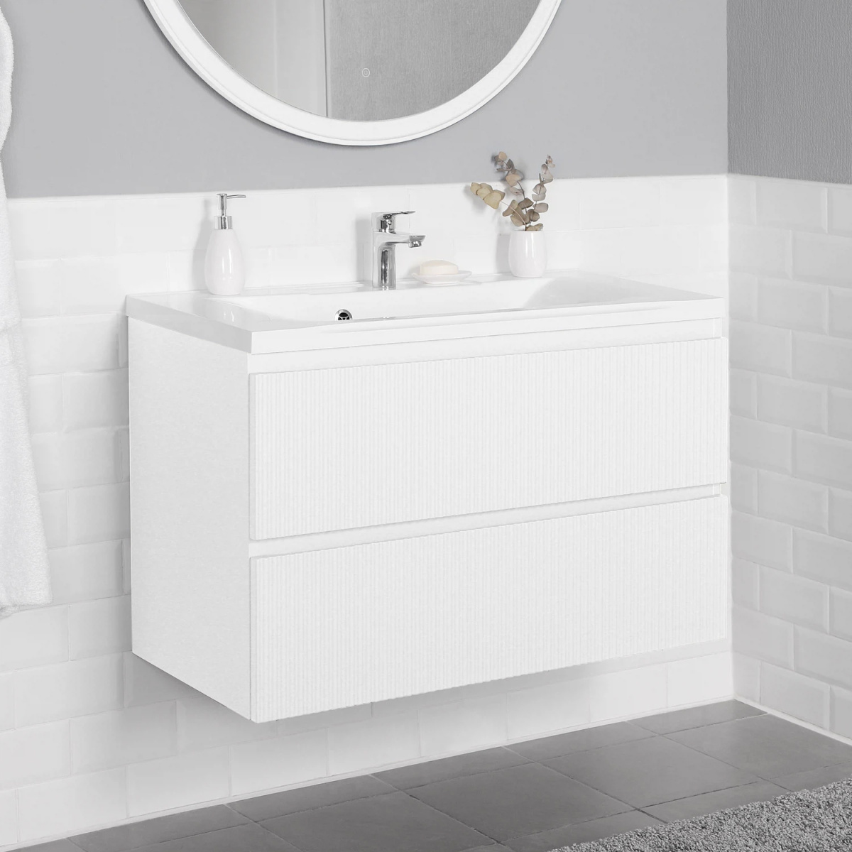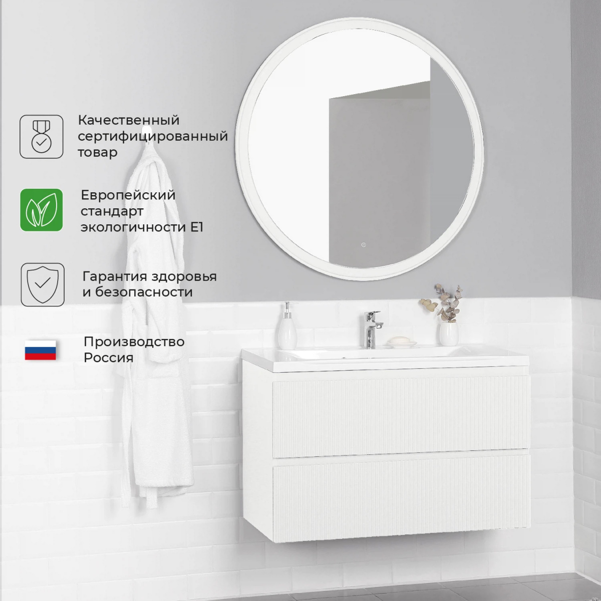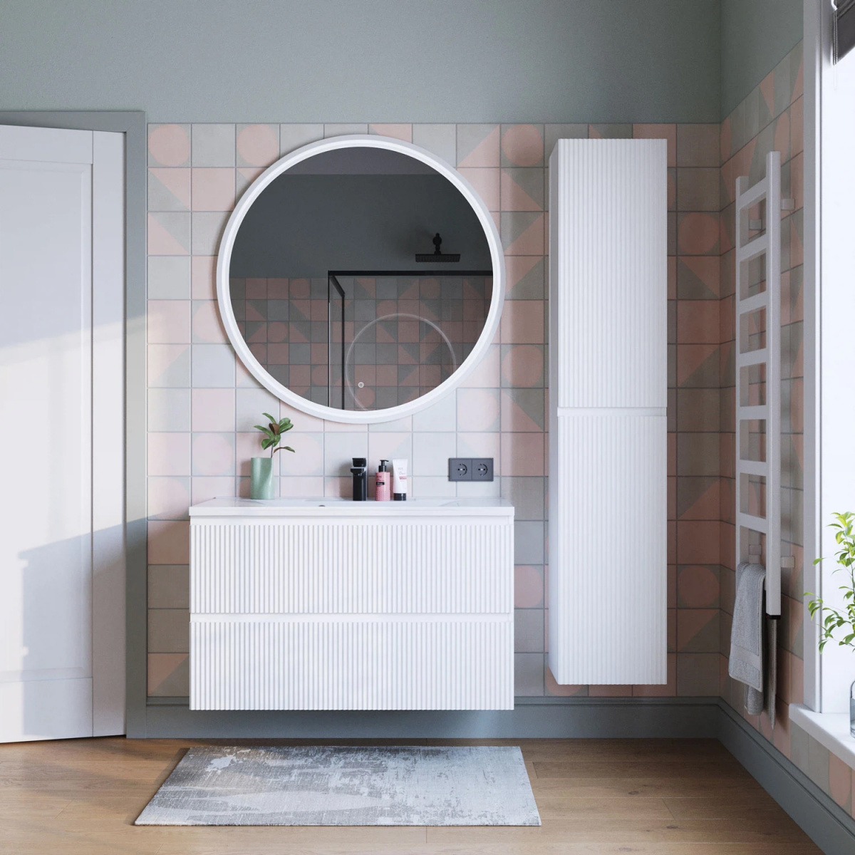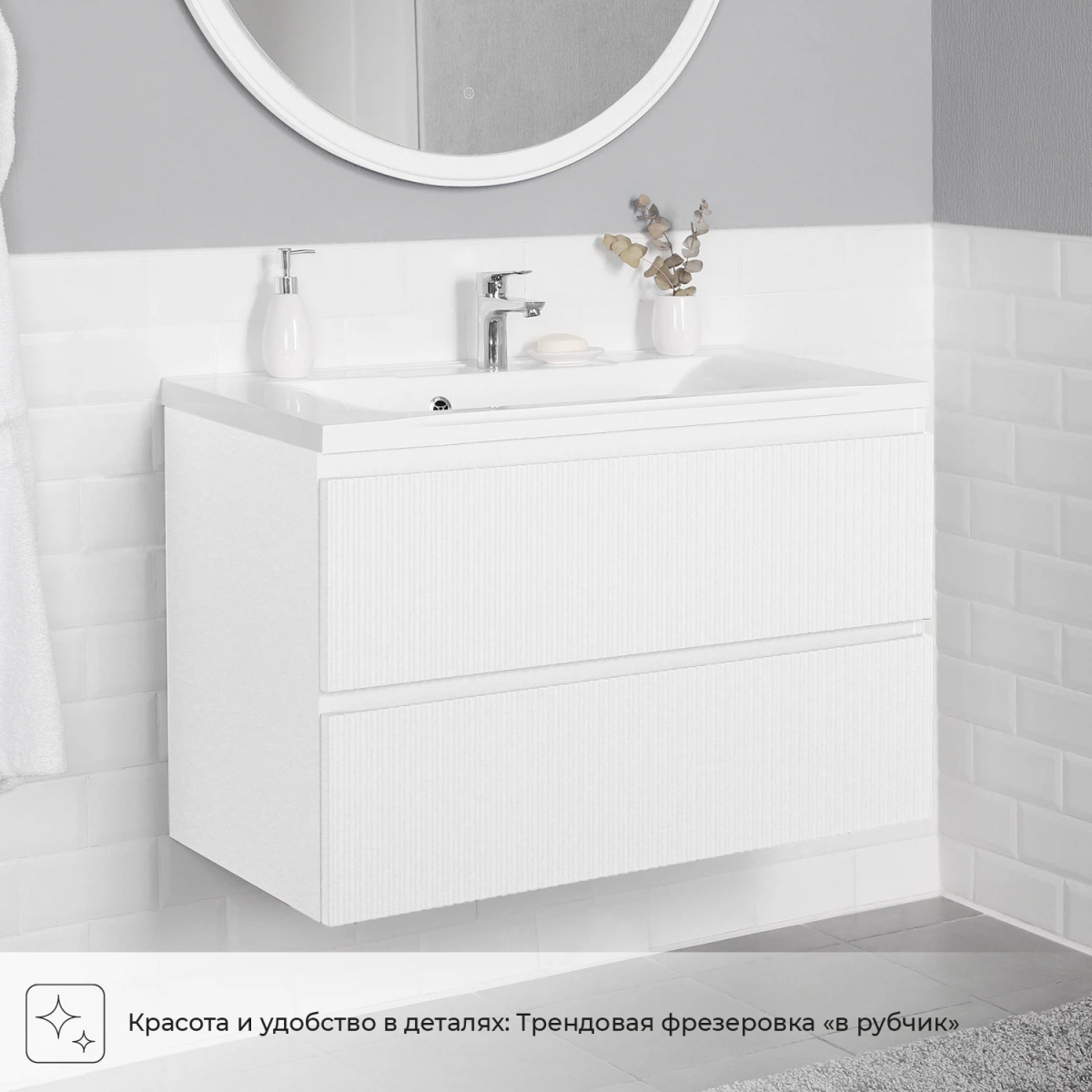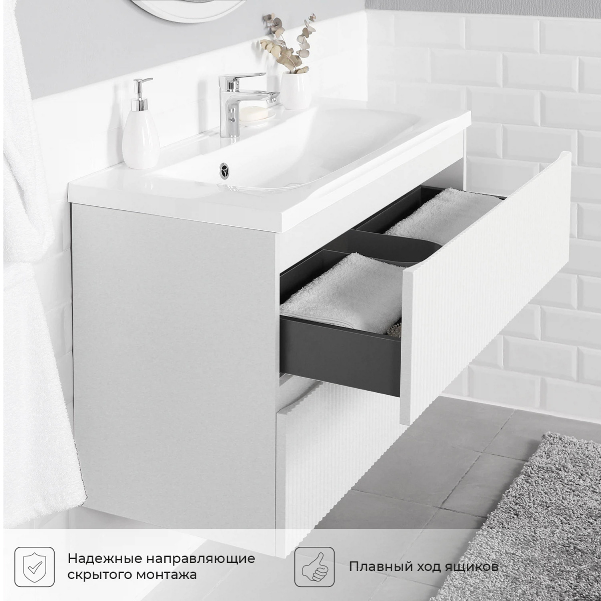 Коллекция Kate – воплотила в себе тренд на фактурные фасады. Идеальный “рубчик” – простое и стильное дизайнерское решение для декорирования фасадов – эта мебель бесспорно станет украшением современной ванной комнаты. Коллекция выполнена из МДФ и покрыта ПВХ пленкой, что делает её устойчивой к влаге, а значит долговечной. Удобные фрезерованные ручки, качественная фурнитура с доводчиками, вместительность – мы продумали все, чтобы мебель была не просто красивой, но еще и функциональной, приятной в использовании.