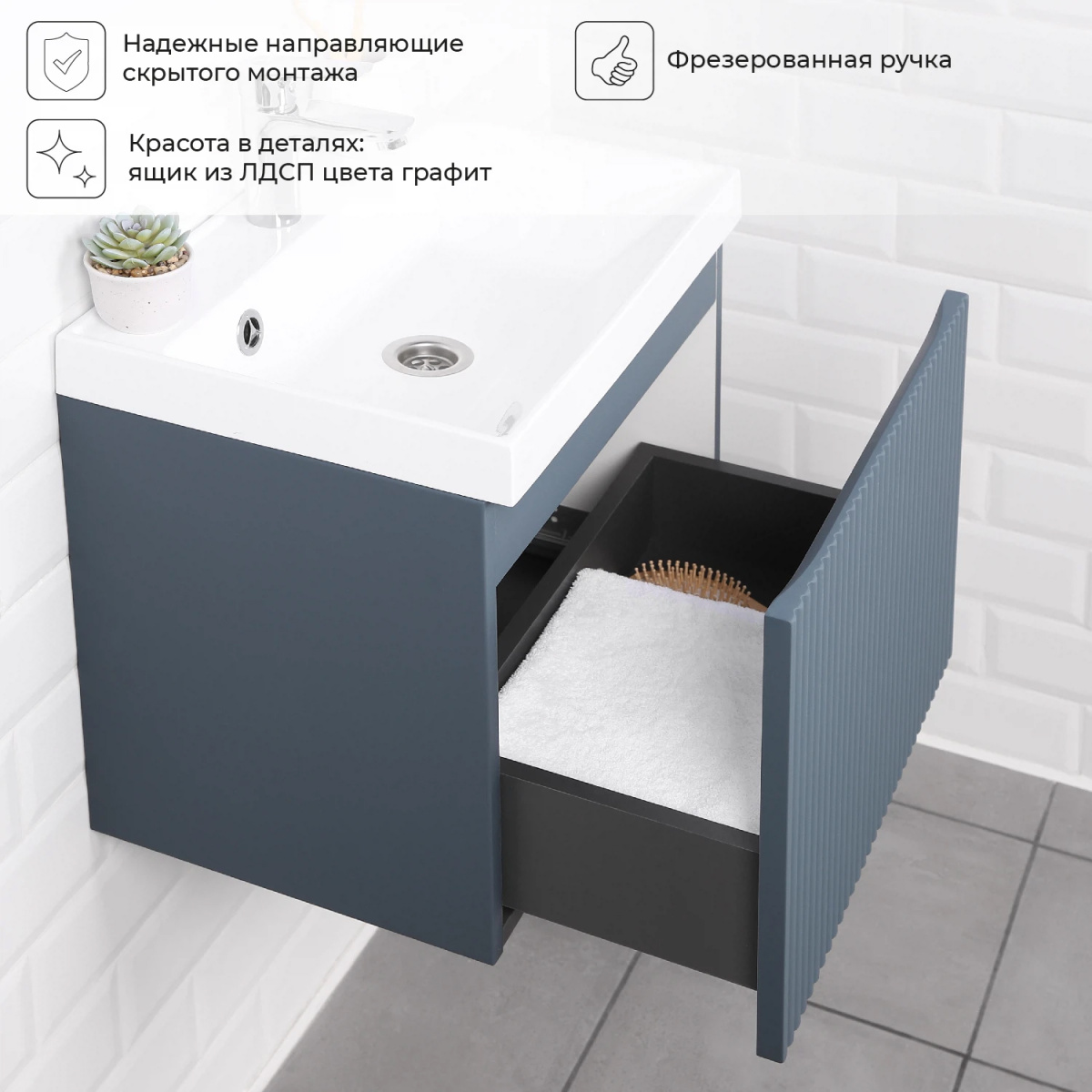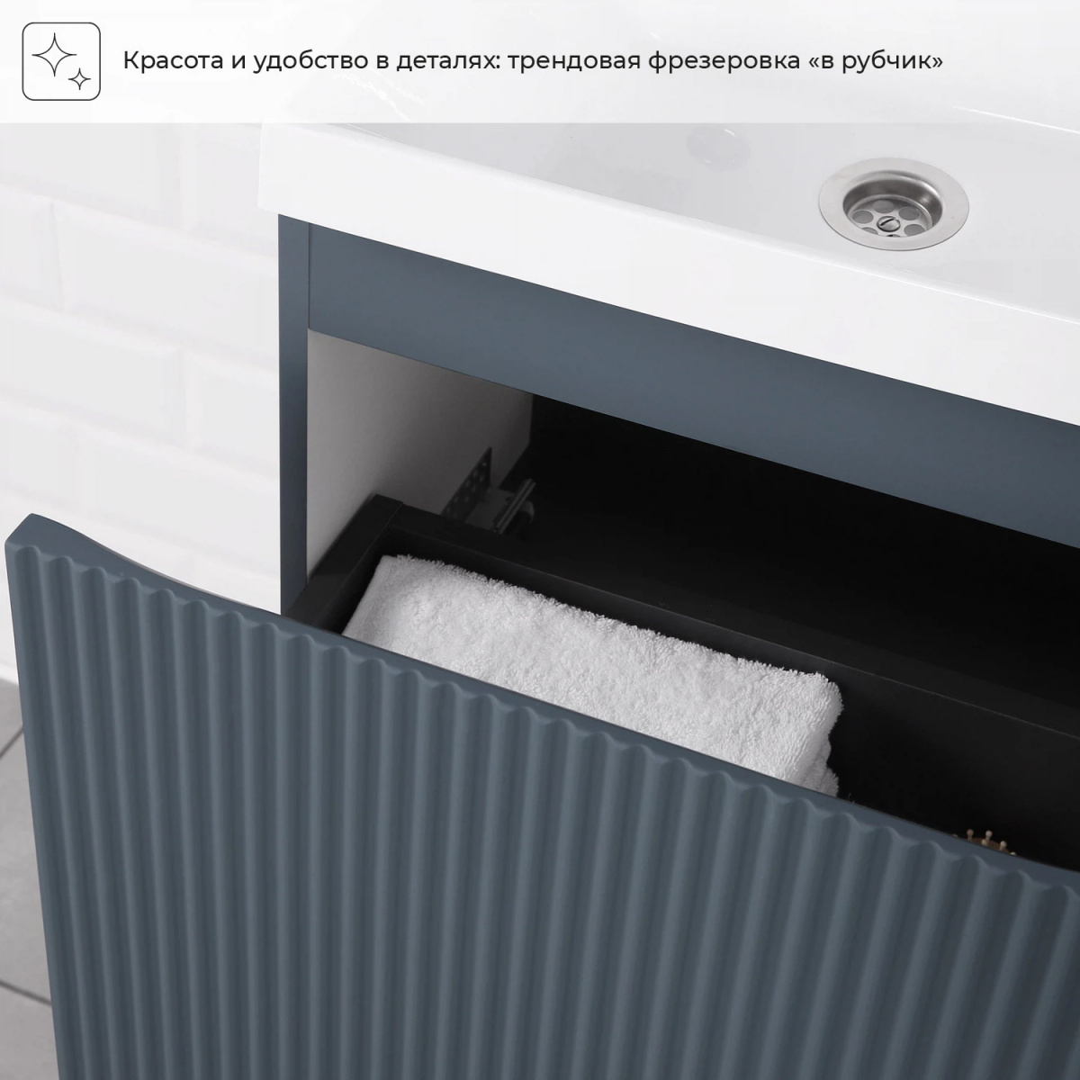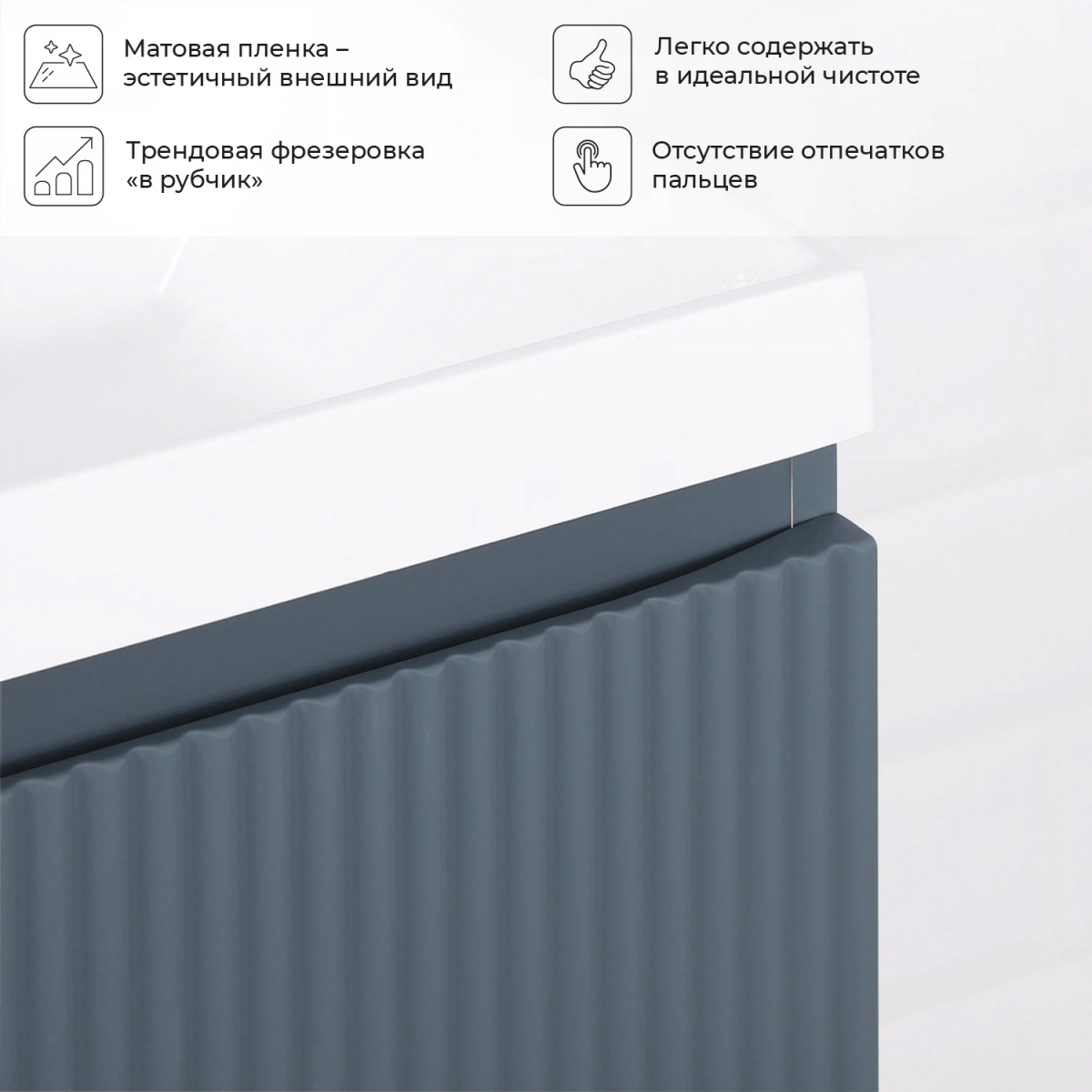 Коллекция Kate – воплотила в себе тренд на фактурные фасады. Идеальный “рубчик” – простое и стильное дизайнерское решение для декорирования фасадов – эта мебель бесспорно станет украшением современной ванной комнаты. Коллекция выполнена из МДФ и покрыта ПВХ пленкой, что делает её устойчивой к влаге, а значит долговечной. Удобные фрезерованные ручки, качественная фурнитура с доводчиками, вместительность – мы продумали все, чтобы мебель была не просто красивой, но еще и функциональной, приятной в использовании.