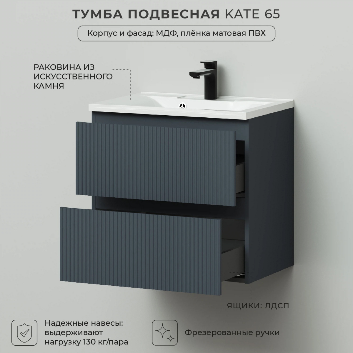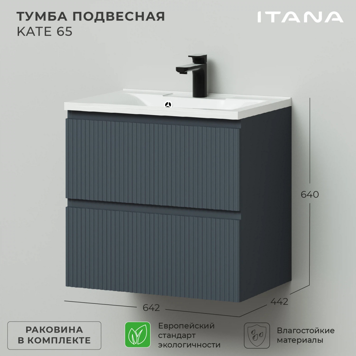 Комплект тумба Итана Kate 65 642х442х640 подвесная, с раковиной Milena 65, антрацит CS00090006