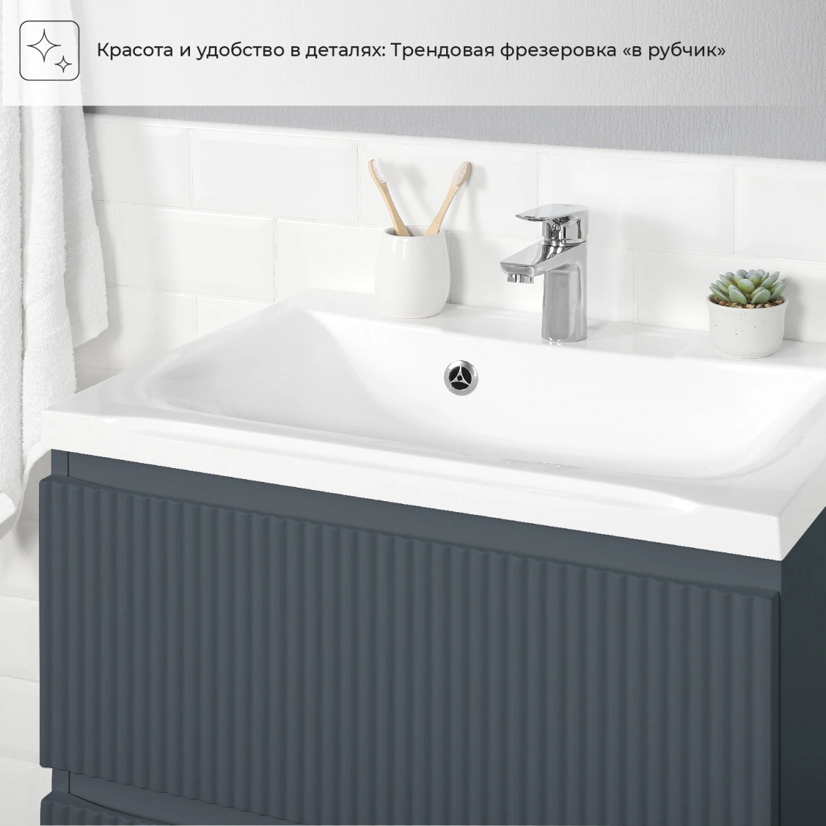 Коллекция Kate – воплотила в себе тренд на фактурные фасады. Идеальный “рубчик” – простое и стильное дизайнерское решение для декорирования фасадов – эта мебель бесспорно станет украшением современной ванной комнаты. Коллекция выполнена из МДФ и покрыта ПВХ пленкой, что делает её устойчивой к влаге, а значит долговечной. Удобные фрезерованные ручки, качественная фурнитура с доводчиками, вместительность – мы продумали все, чтобы мебель была не просто красивой, но еще и функциональной, приятной в использовании.