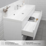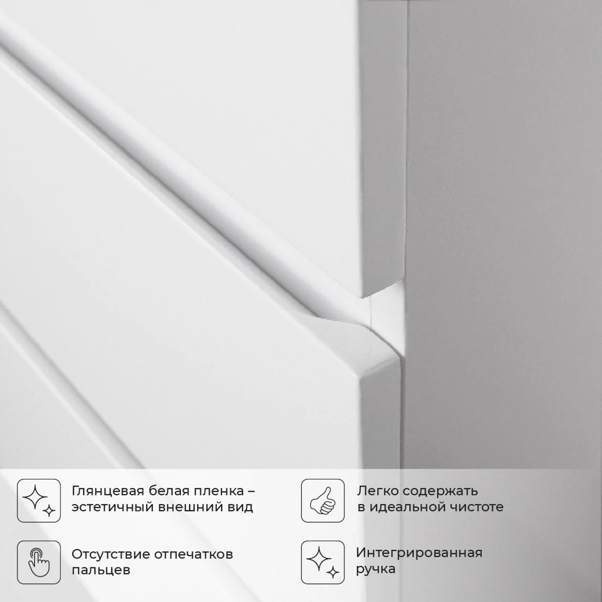 Подвесная тумба из коллекции Sky -это сочетание современной стилистики и богатого функционала. Подвесной способ установки дает возможность не только визуально увеличить пространство, но и обеспечивает быстрый и удобный доступ для уборки. Тумба покрыта ПВХ-пленкой с высокой степенью глянца, что обеспечивает изделию привлекательный внешний вид, а также износостойкость и долговечность. Петли с доводчиками обеспечивают плавное открывание и закрывание дверцы. Ручки интегрированы в фасад, что исключает возможность случайного удара о фурнитуру.