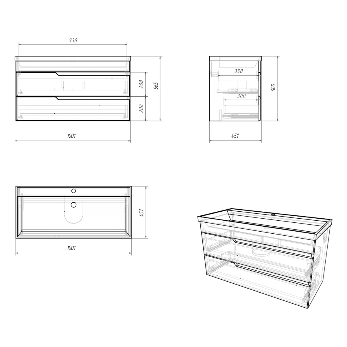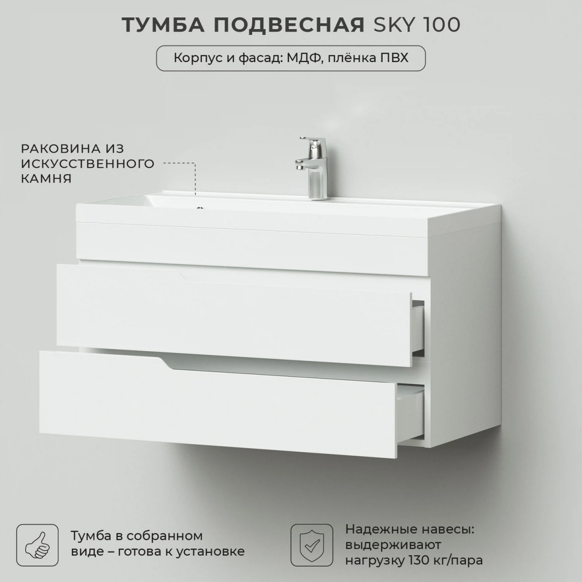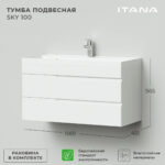 Комплект тумба Итана Sky 100 1001х451х520 подвесная, с раковиной Clarissa 100, белый глянец CS00091695